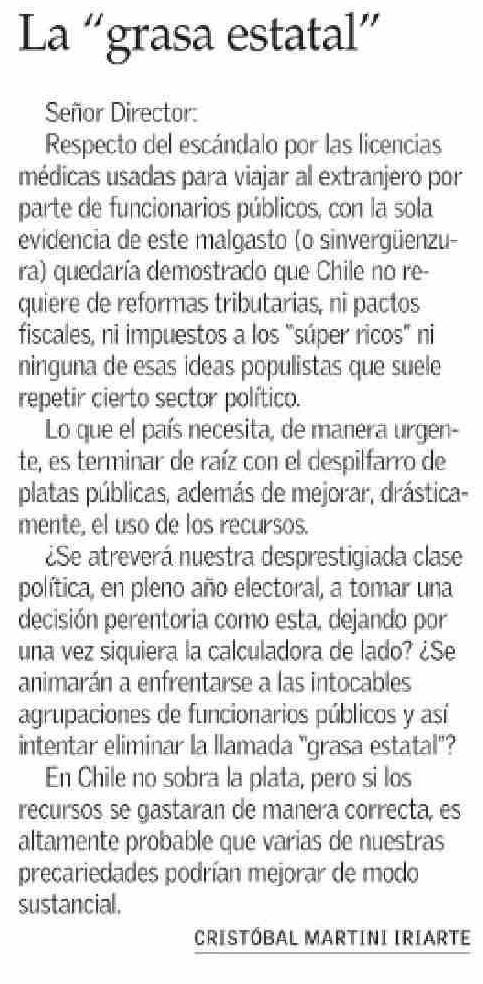 CARTAS: La “grasa estatal” 24-05-2025 El Mercurio |