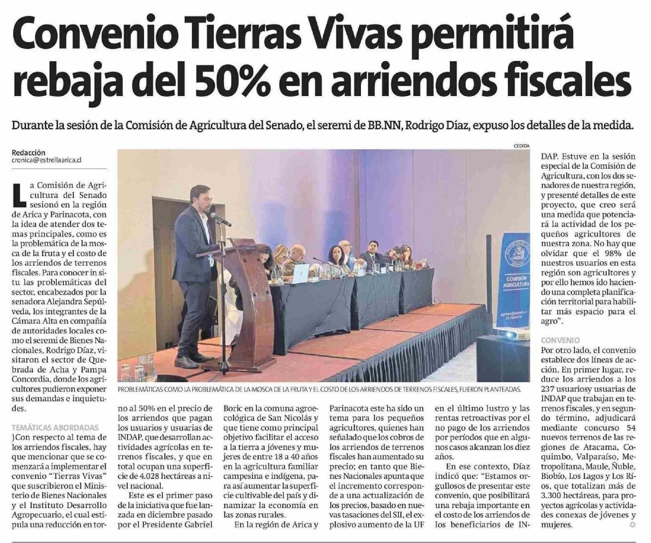 Título: Convenio Tierras Vivas permitirá rebaja del 50% en arriendos fiscales