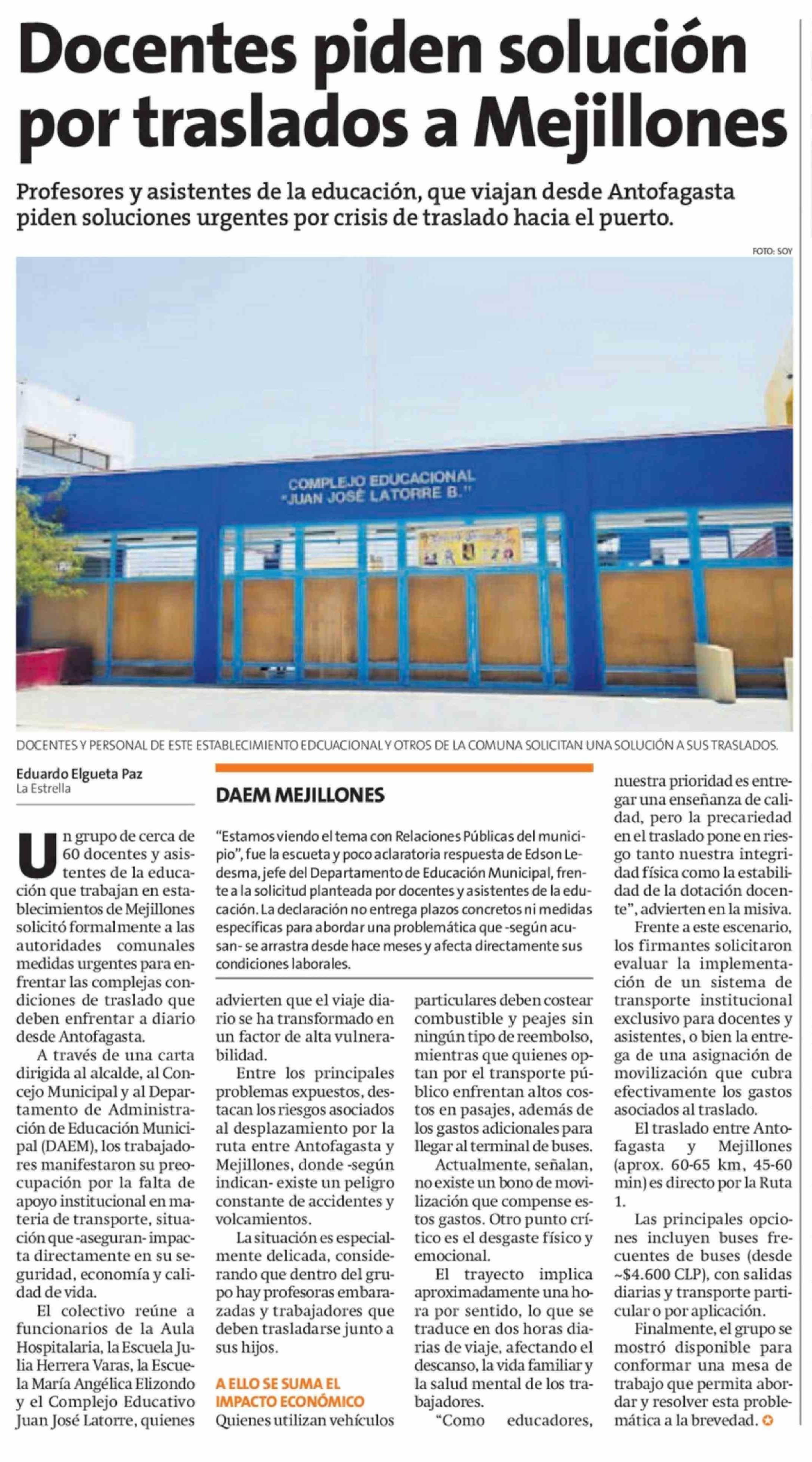 Título: Docentes piden solución por traslados a Mejillones