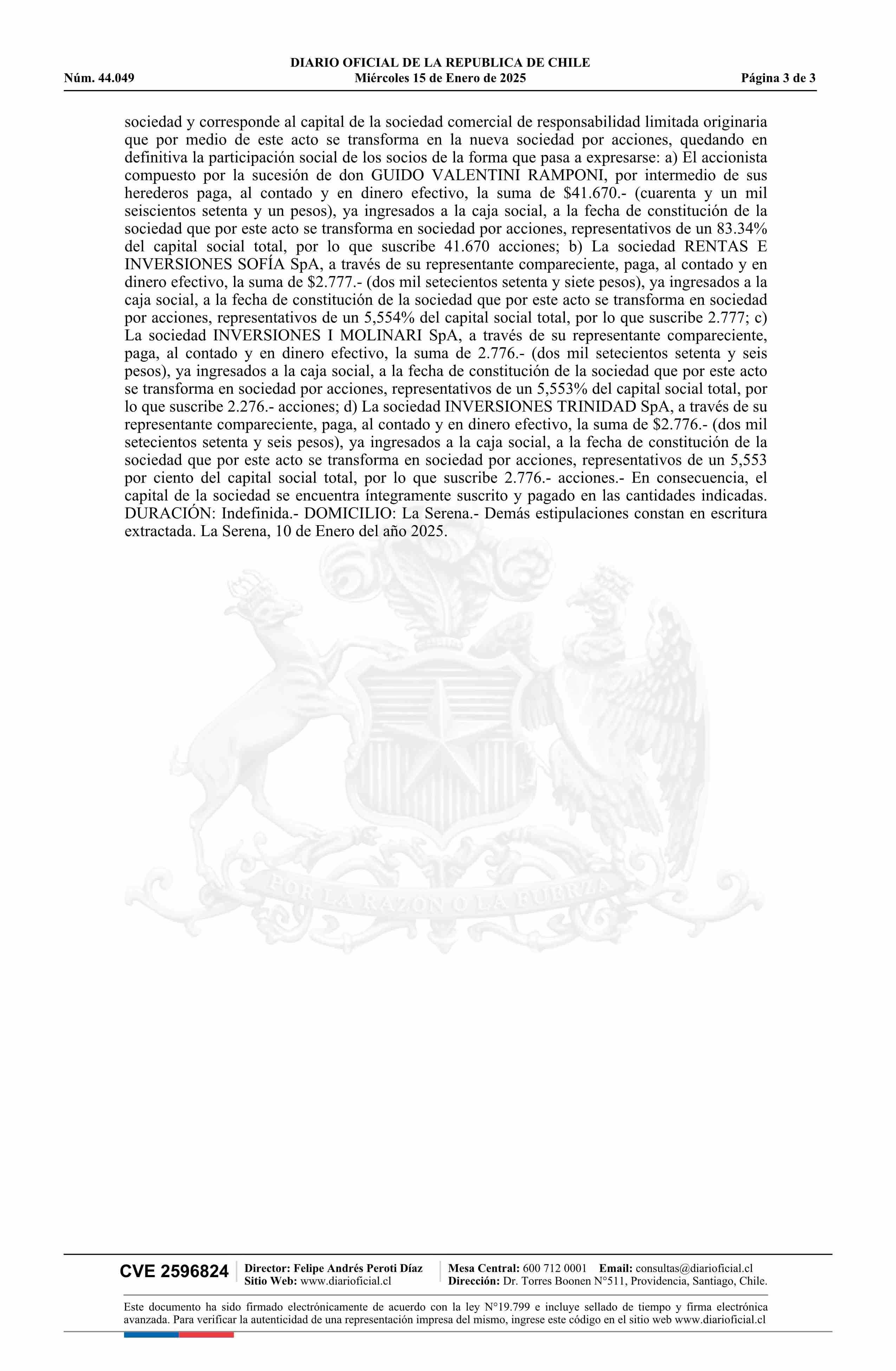 Título: INVERSIONES VALENTINI LIMITADA 85.546.600-7*