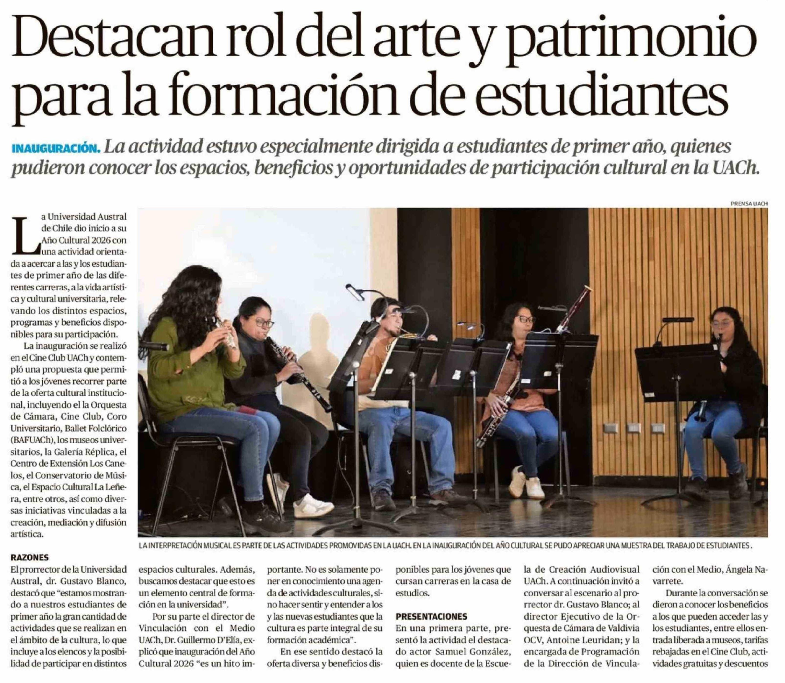 Destacan rol del arte y patrimonio para la formación de estudiantes 23-04-2026 Diario Austral Región de Los Ríos |