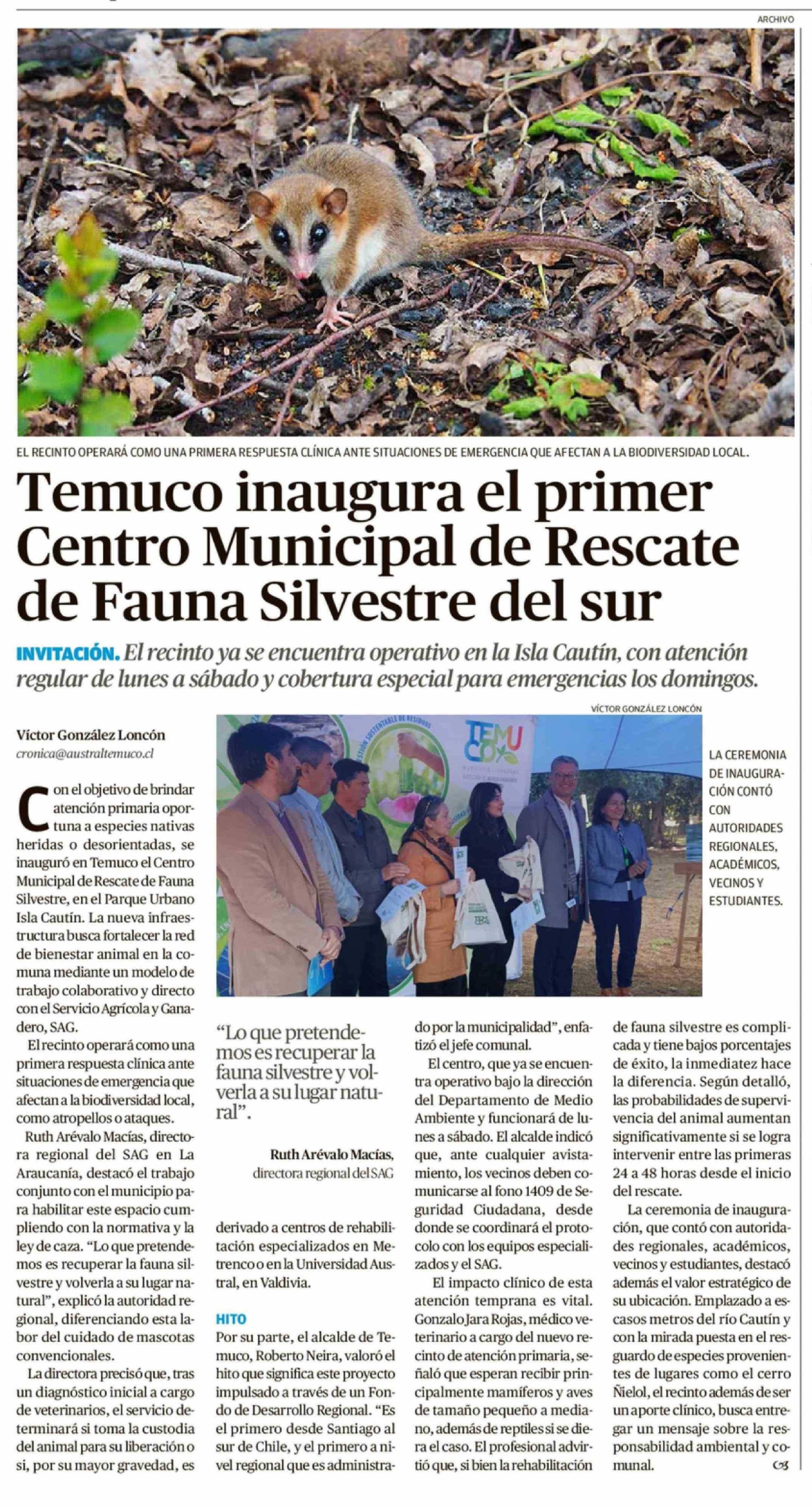 Título: Temuco inaugura el primer Centro Municipal de Rescate de Fauna Silvestre del sur