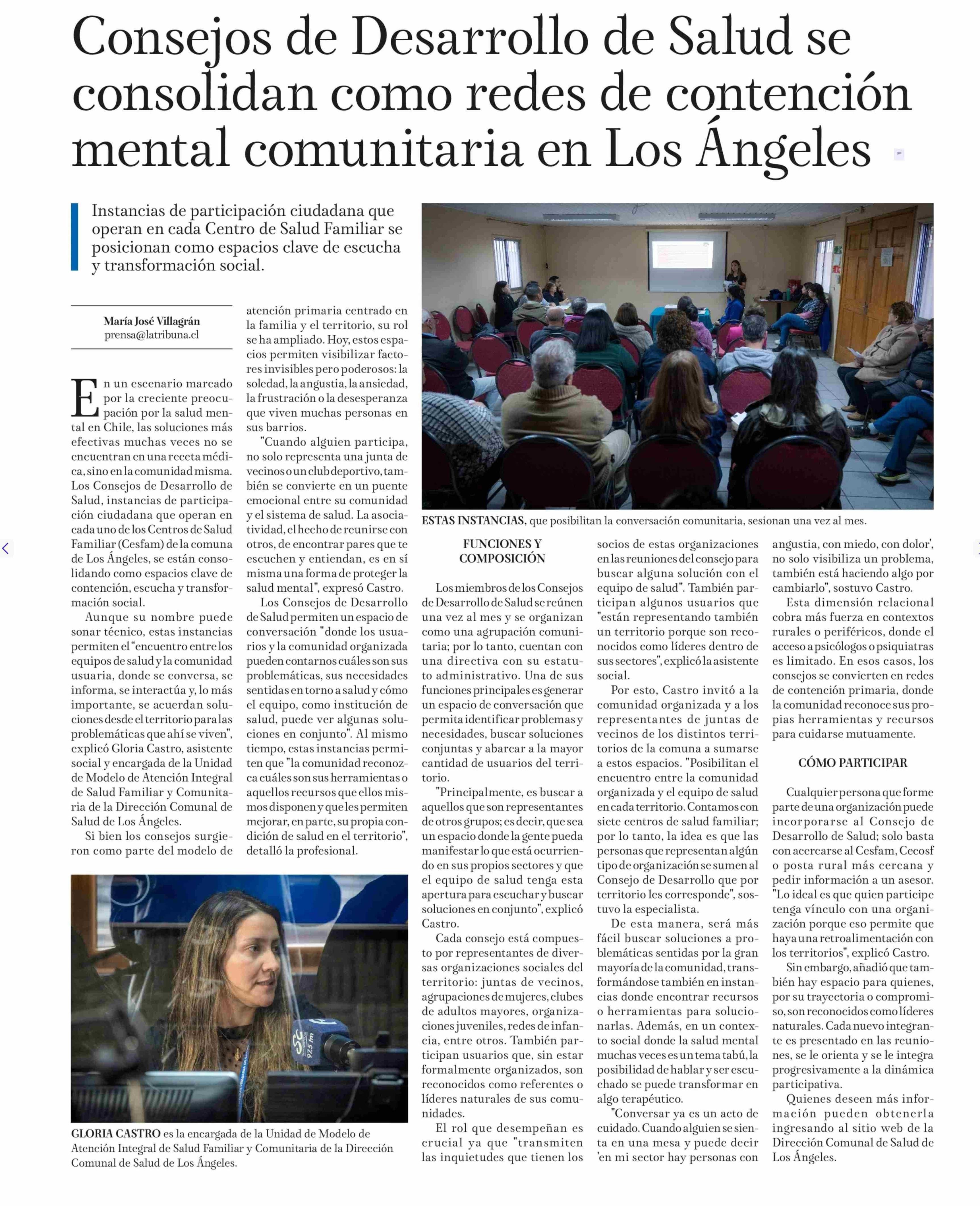 Consejos de Desarrollo de Salud se consolidan como redes de contención mental comunitaria en Los Angeles 04-06-2025 La Tribuna |