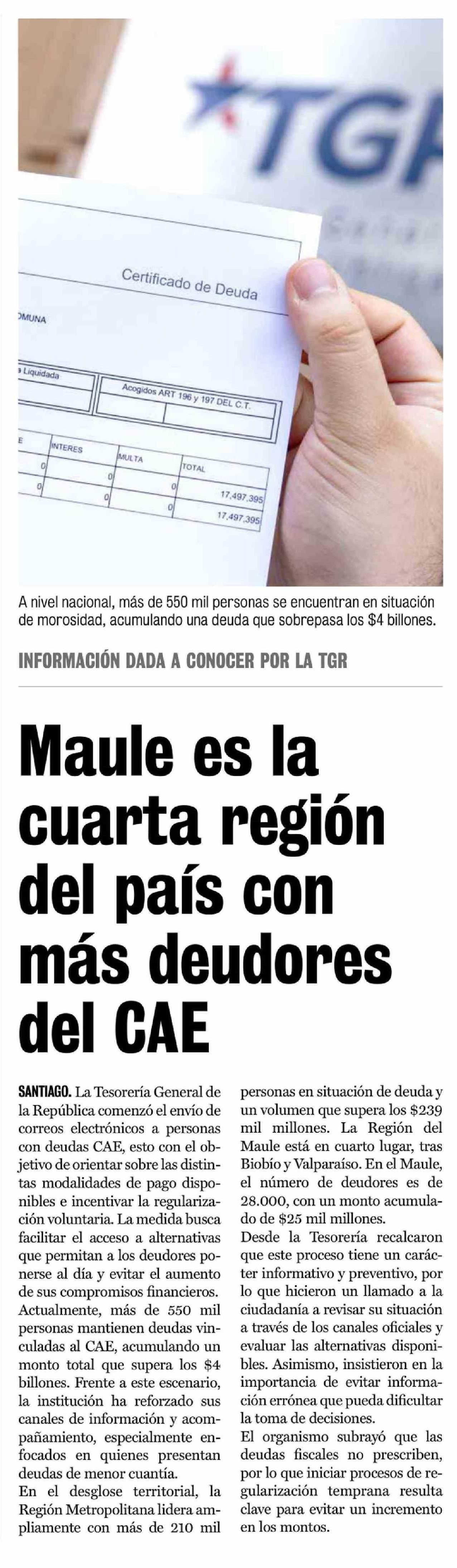 | Título: | Maule es la cuarta región del país con más deudores del CAE |