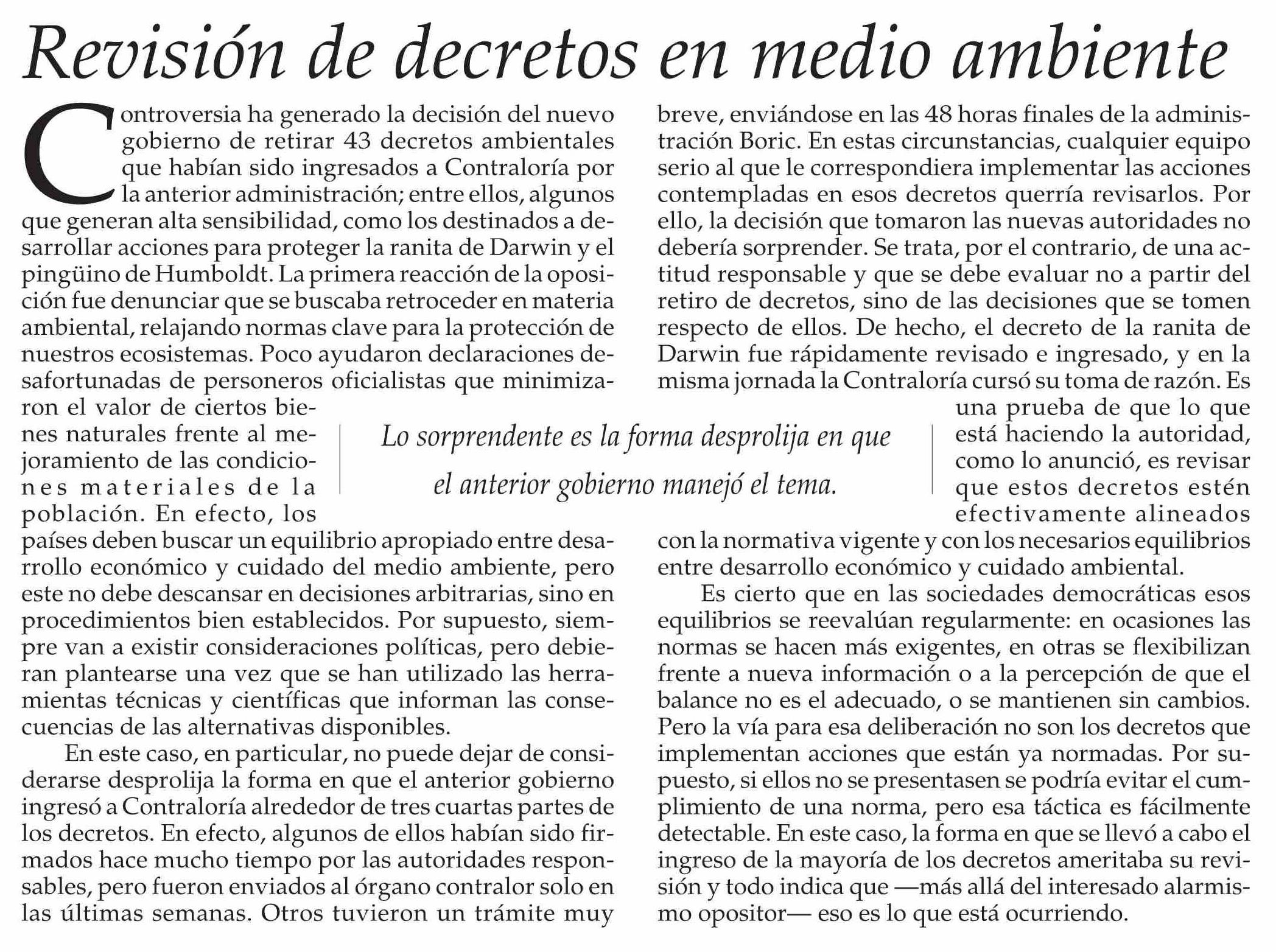 Editorial: Revisión de decretos en medio ambiente 22-03-2026 El Mercurio |