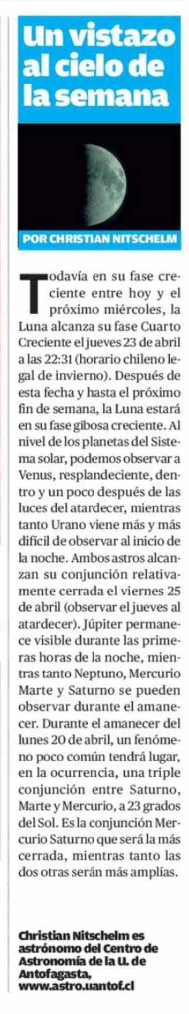 Un vistazo al cielo de la semana 19-04-2026 El Mercurio de Antofagasta |