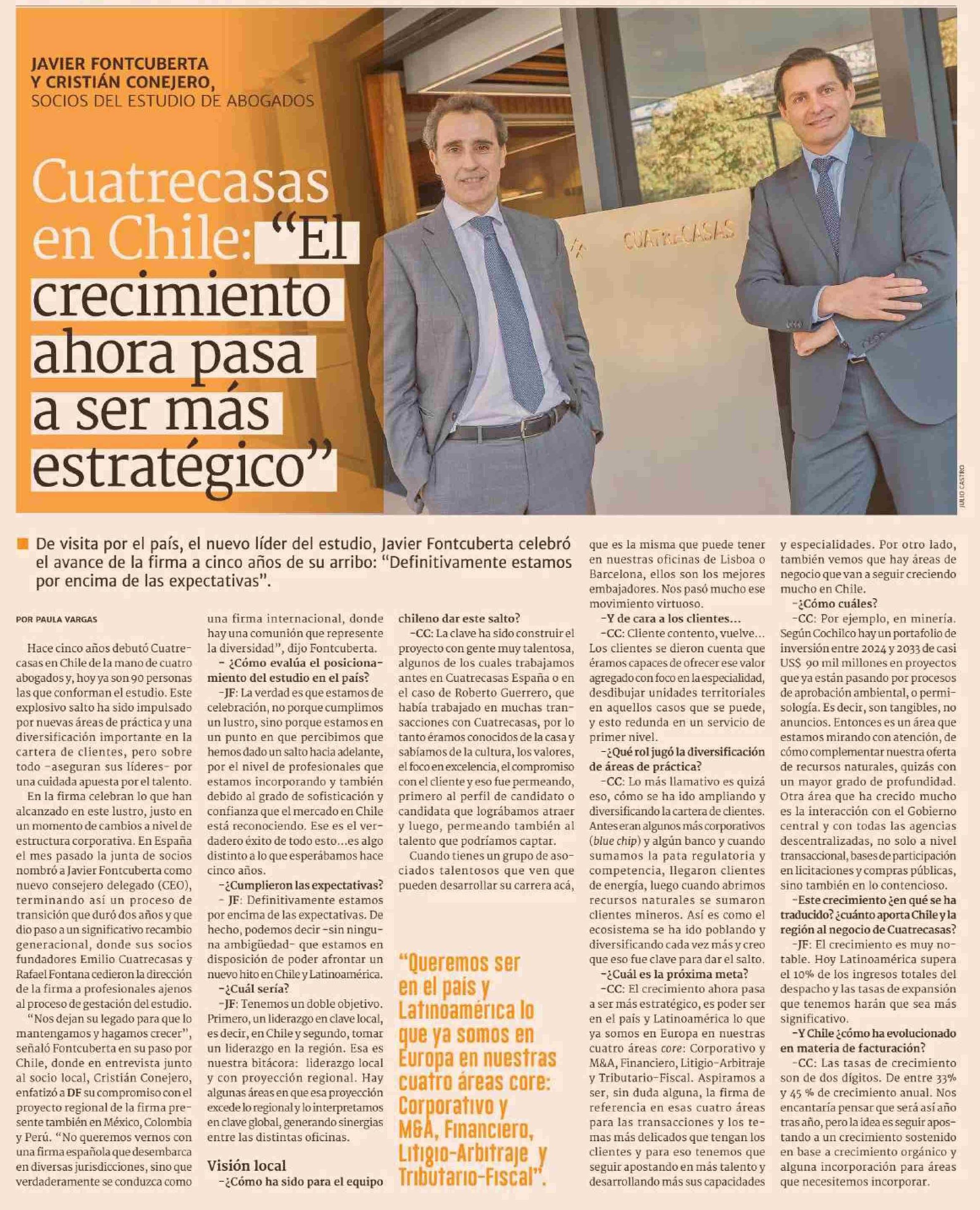 | Título: | Cuatrecasas en Chile: “El crecimiento ahora pasa a ser más estratégico” |