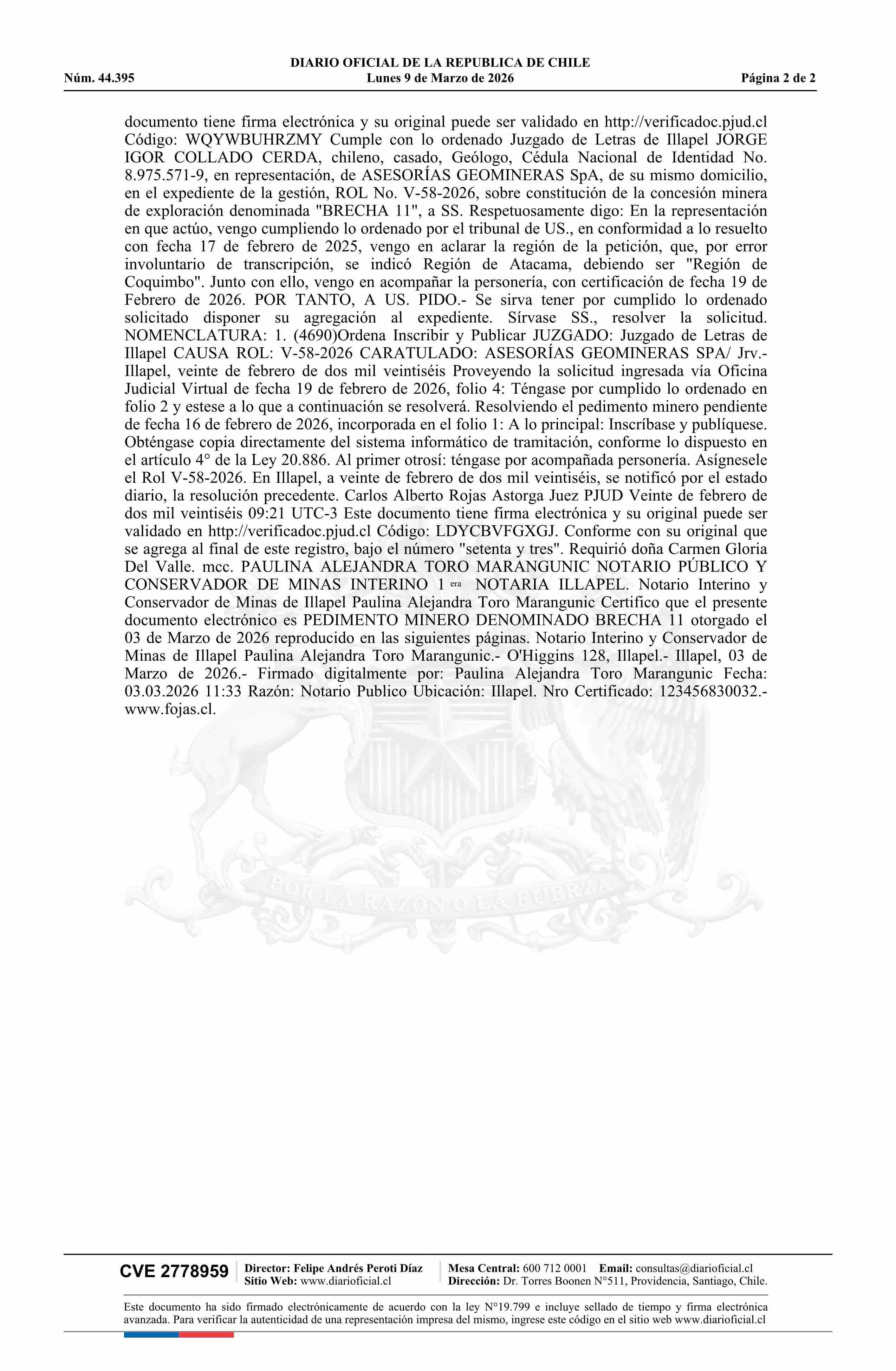 09-03-2026 DIARIO OFICIAL CHILE - BOLETÍN OFICIAL DE MINERÍA