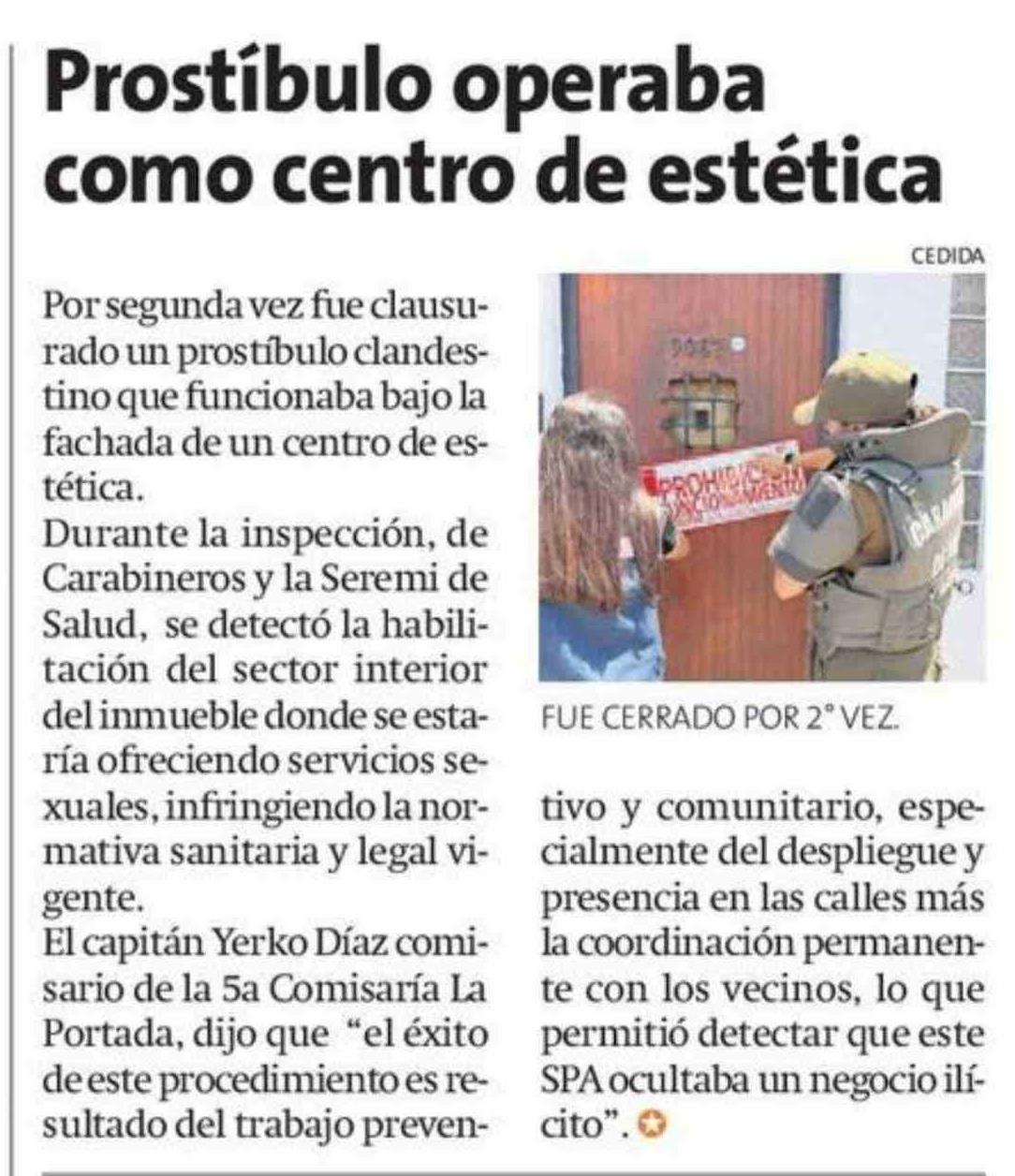 Prostíbulo operaba como centro de estética 16-01-2026 La Estrella de Antofagasta |
