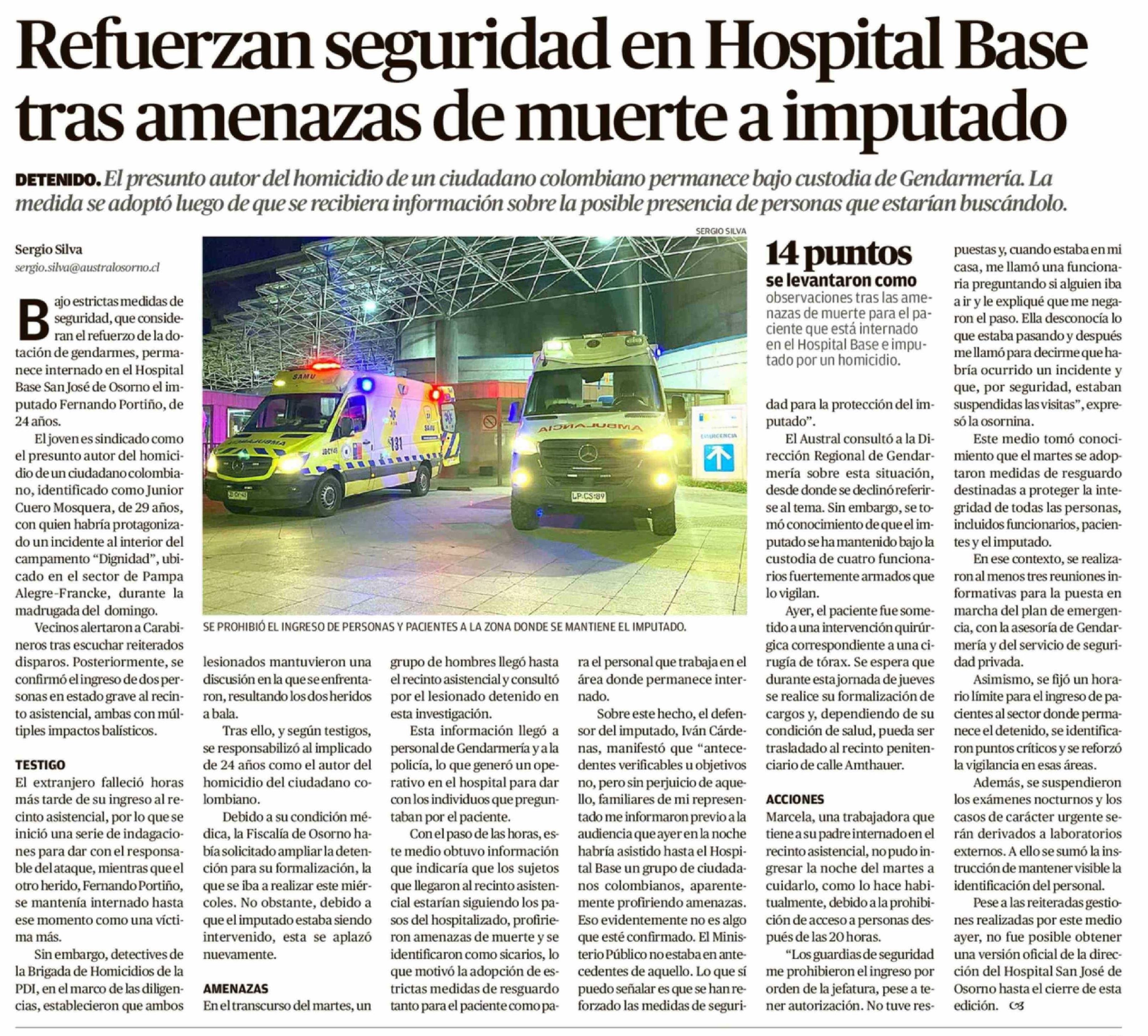 Refuerzan seguridad en Hospital Base tras amenazas de muerte a imputado 05-02-2026 El Austral de Osorno |