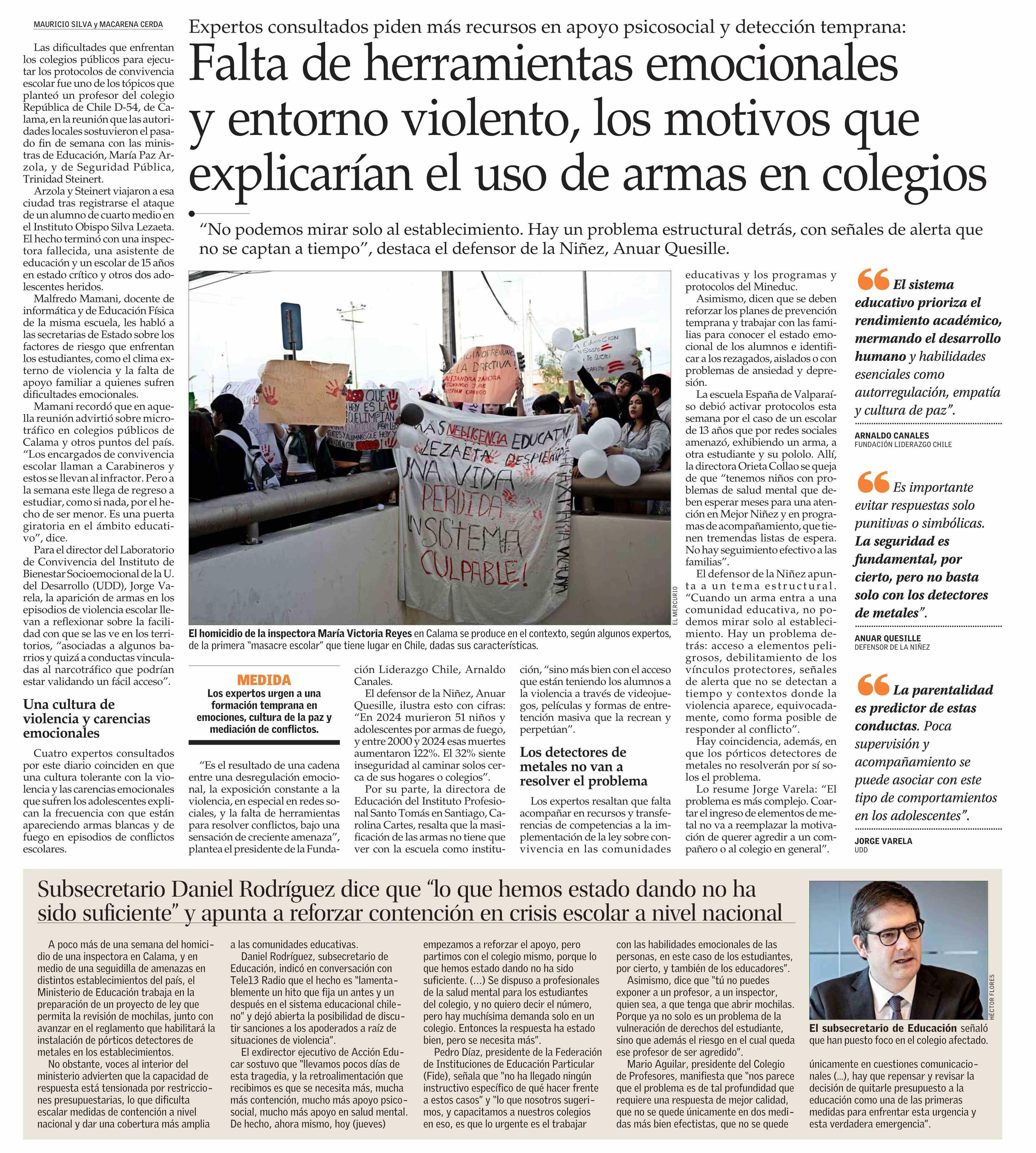 Título: Falta de herramientas emocionales y entorno violento, los motivos que explicarían el uso de armas en colegios