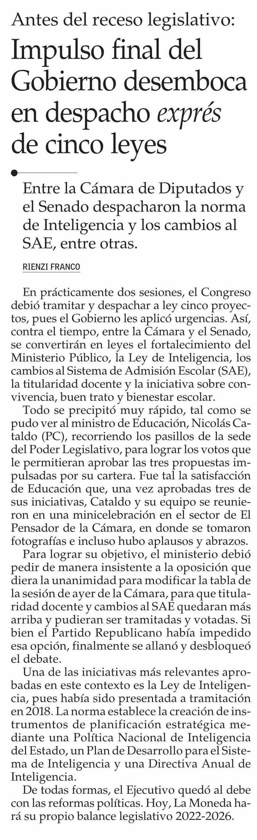 Título: Impulso final del Gobierno desemboca en despacho exprés de cinco leyes