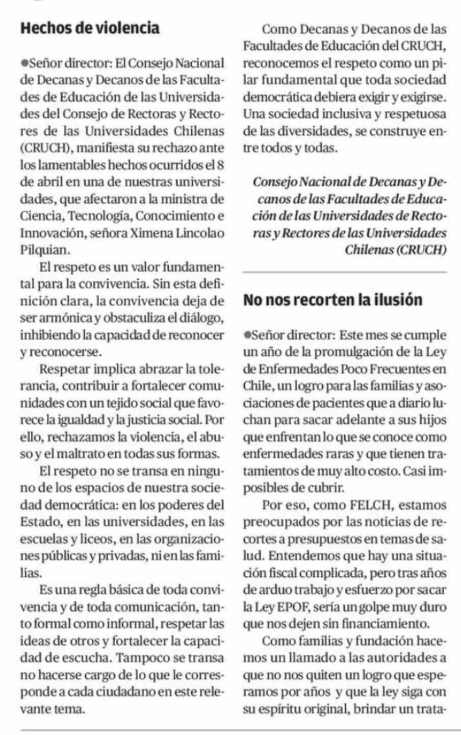 Cartas: Hechos de violencia 15-04-2026 El Diario de Atacama |