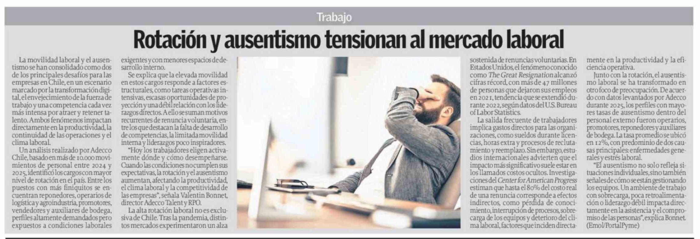 | Título: | Rotación y ausentismo tensionan al mercado laboral |