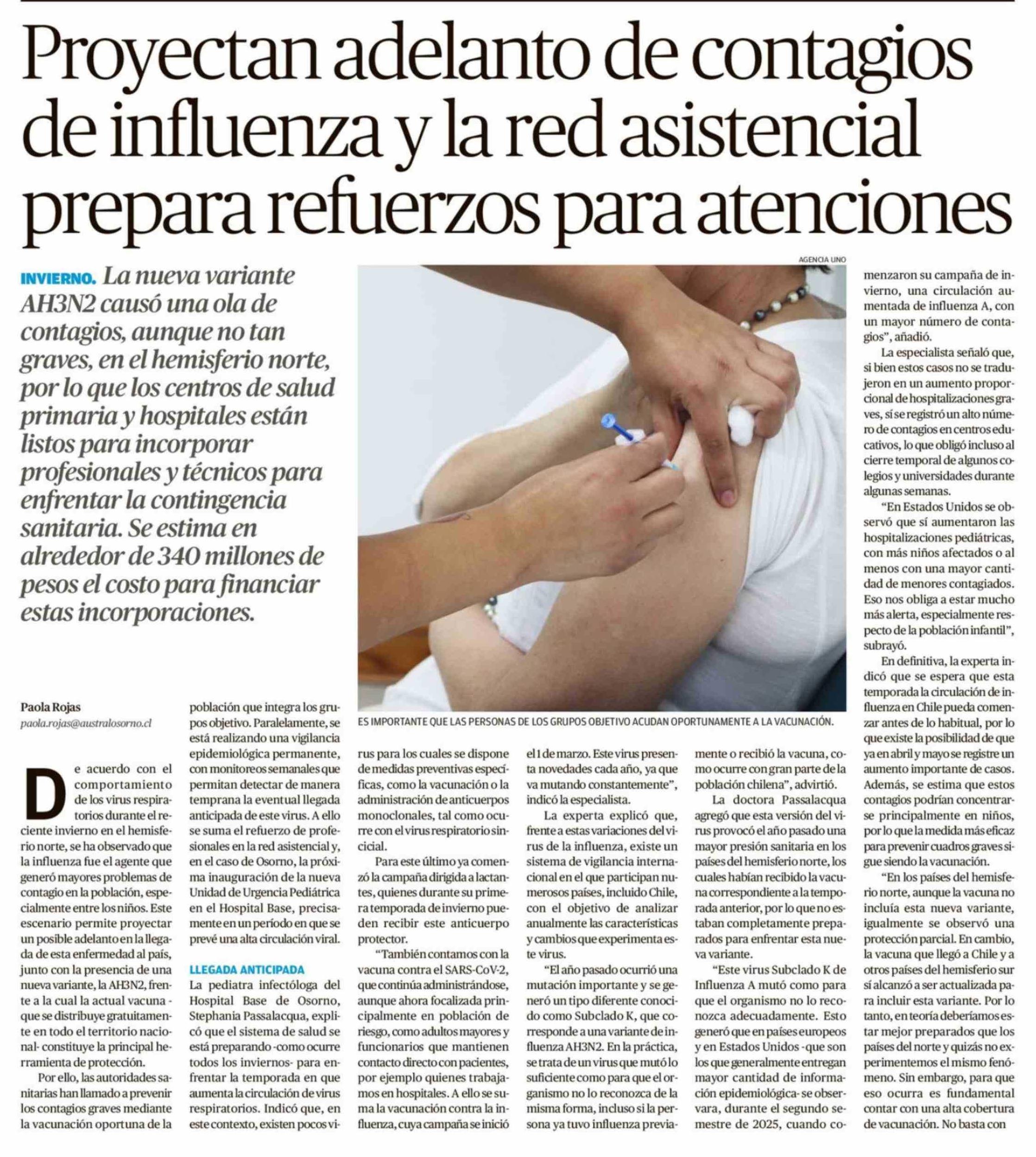 Título: Proyectan adelanto de contagios de influenza y la red asistencial prepara refuerzos para atenciones