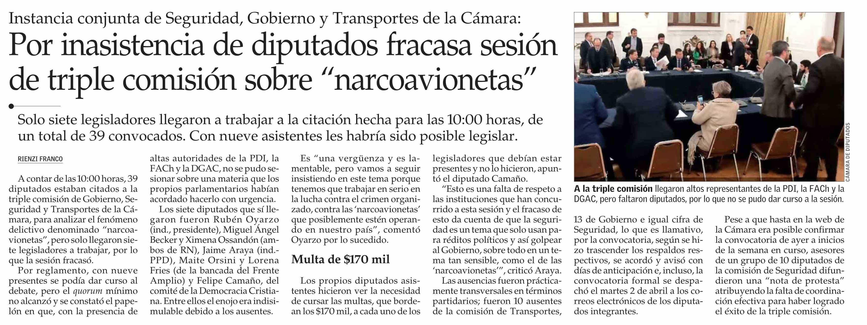 Título: Por inasistencia de diputados fracasa sesión de triple comisión sobre “narcoavionetas”