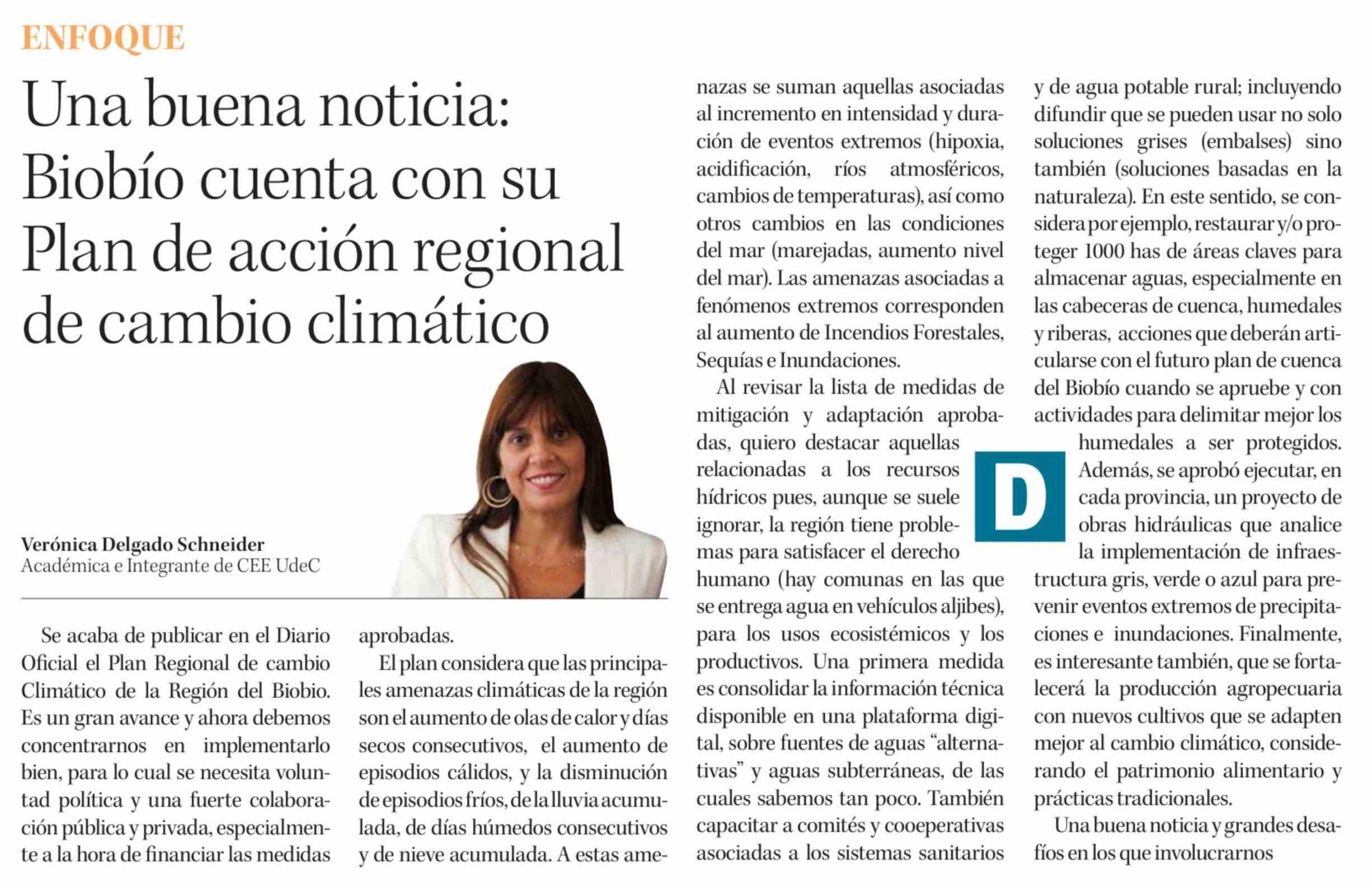 | Título: | Columnas de Opinión: Una buena noticia: Biobío cuenta con su Plan de acción regional de cambio climático |