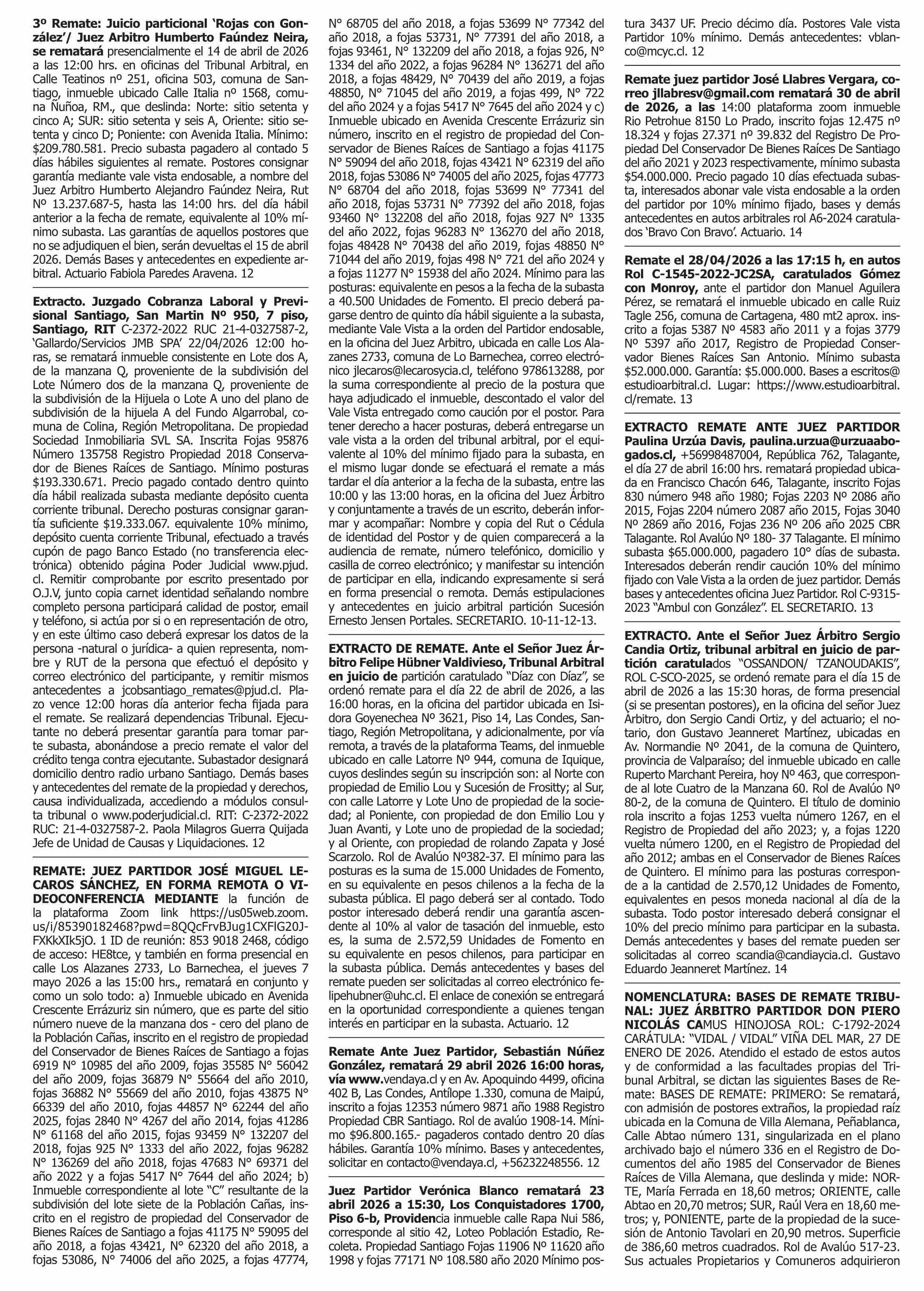 REMATES: 12-04-2026 P&L Públicos y Legales |