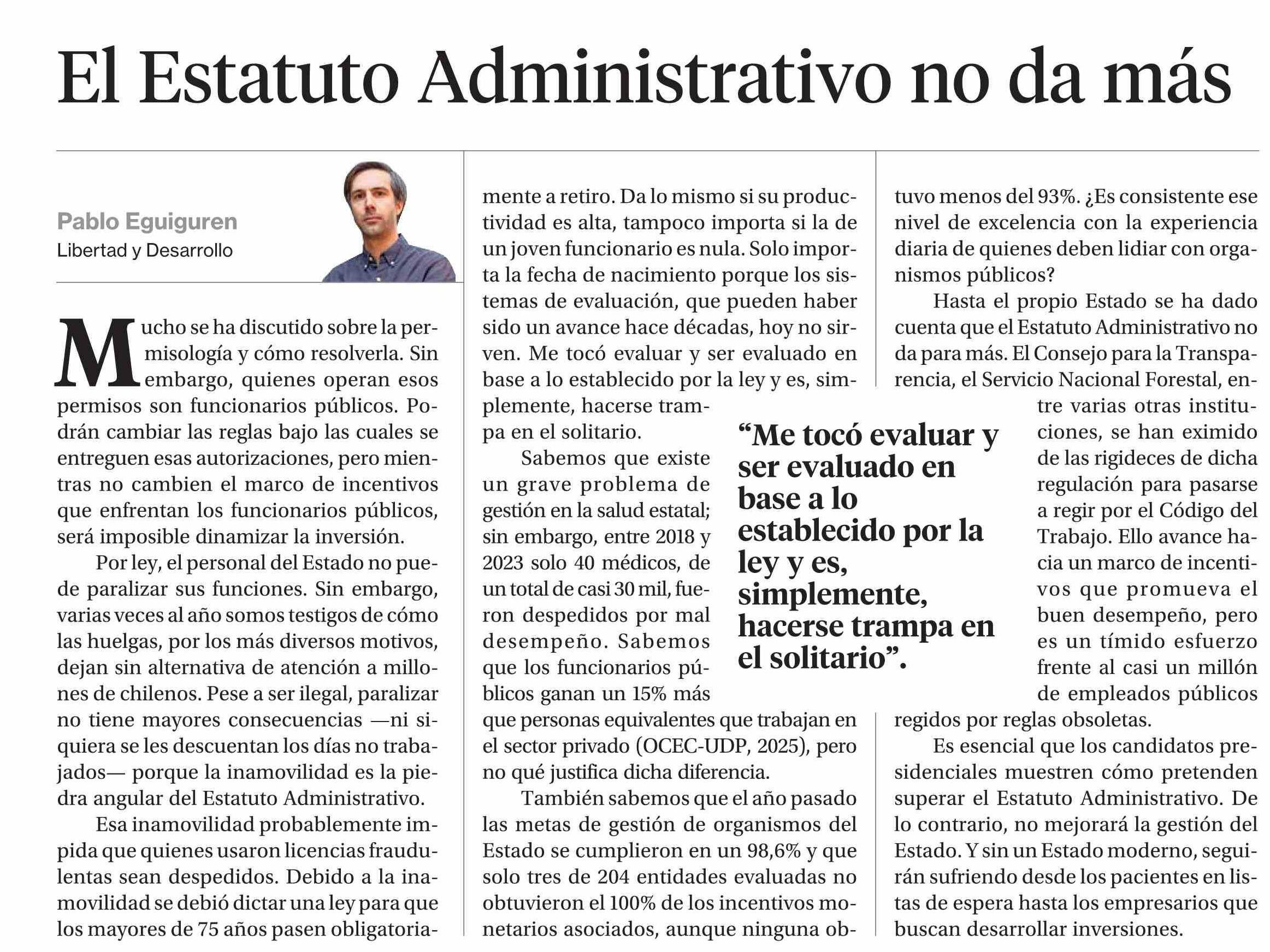 COLUMNAS DE OPINIÓN: El Estatuto Administrativo no da más 12-06-2025 La Segunda |