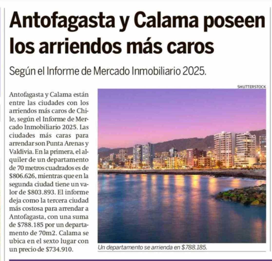 Título: Antofagasta y Calama poseen los arriendos más caros