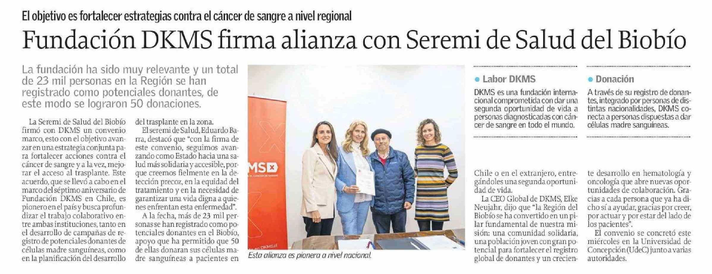 Fundación DKMS firma alianza con Seremi de Salud del Biobío 11-04-2025 El Sur |