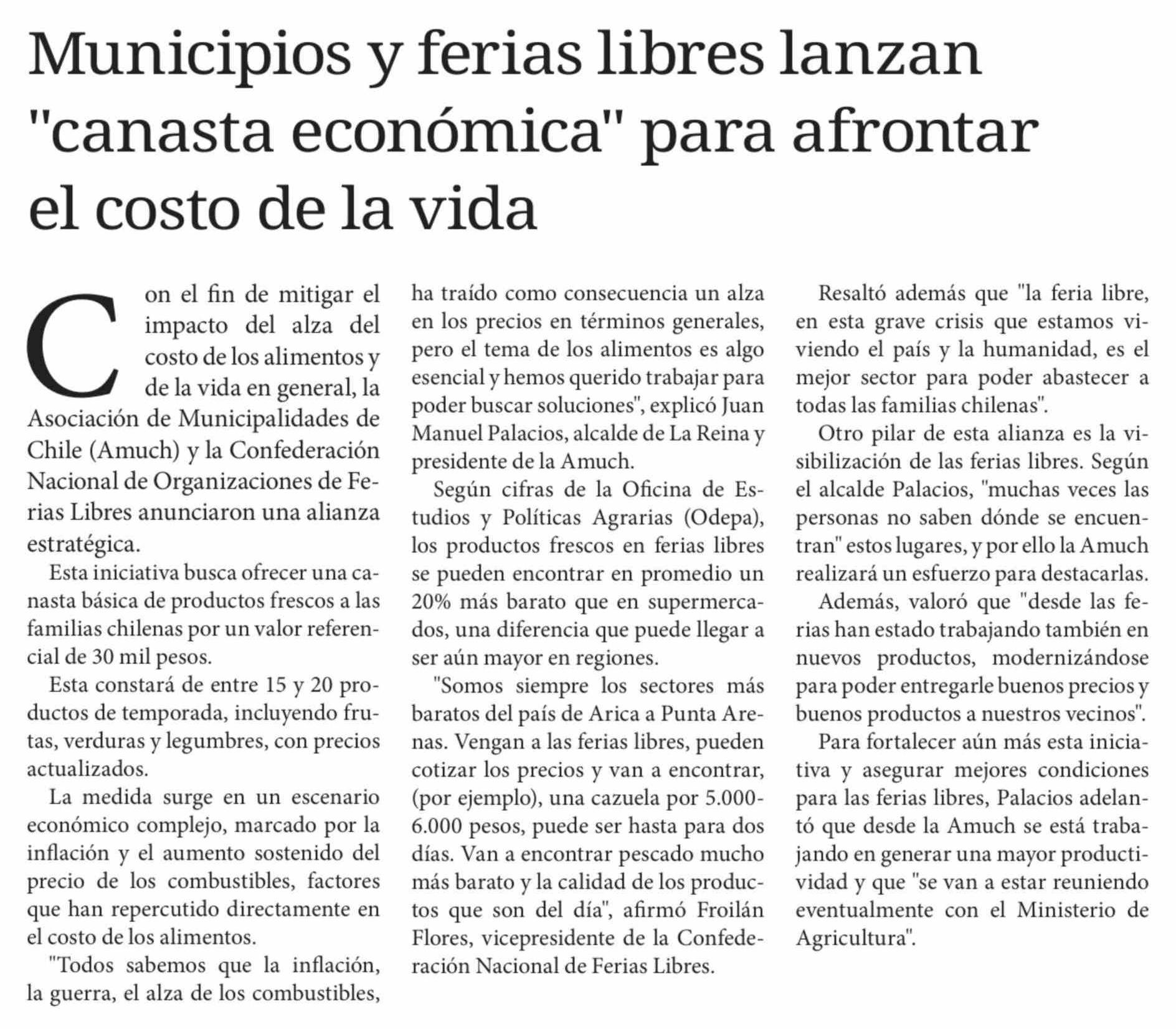 | Título: | Municipios y ferias libres lanzan "canasta económica" para afrontar el costo de la vida |