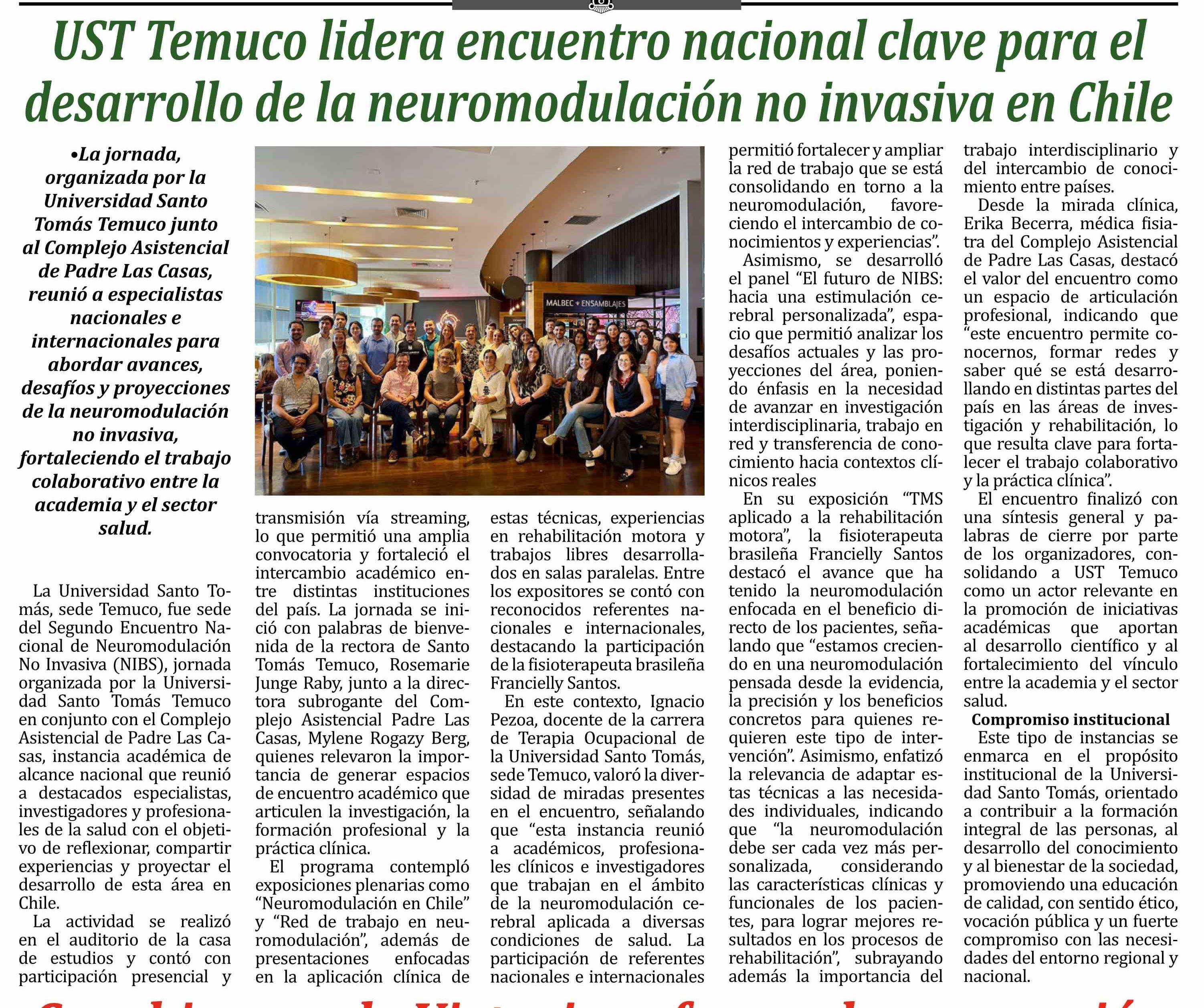 Título: UST Temuco lidera encuentro nacional clave para el desarrollo de la neuromodulación no invasiva en Chile
