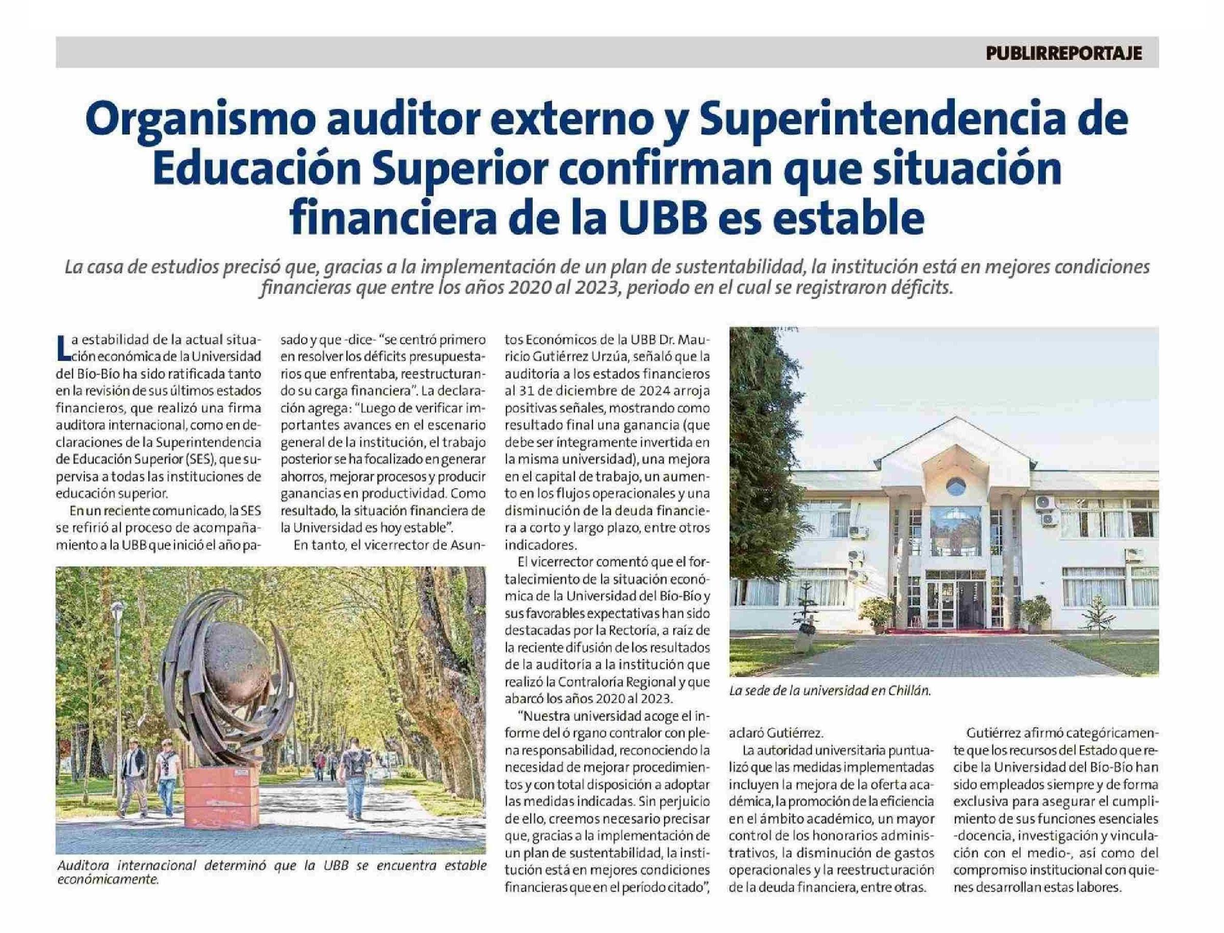 Organismo auditor externo y Superintendencia de Educación Superior confirman que situación financiera de la UBB es estable 05-06-2025 Crónica de Chillán |
