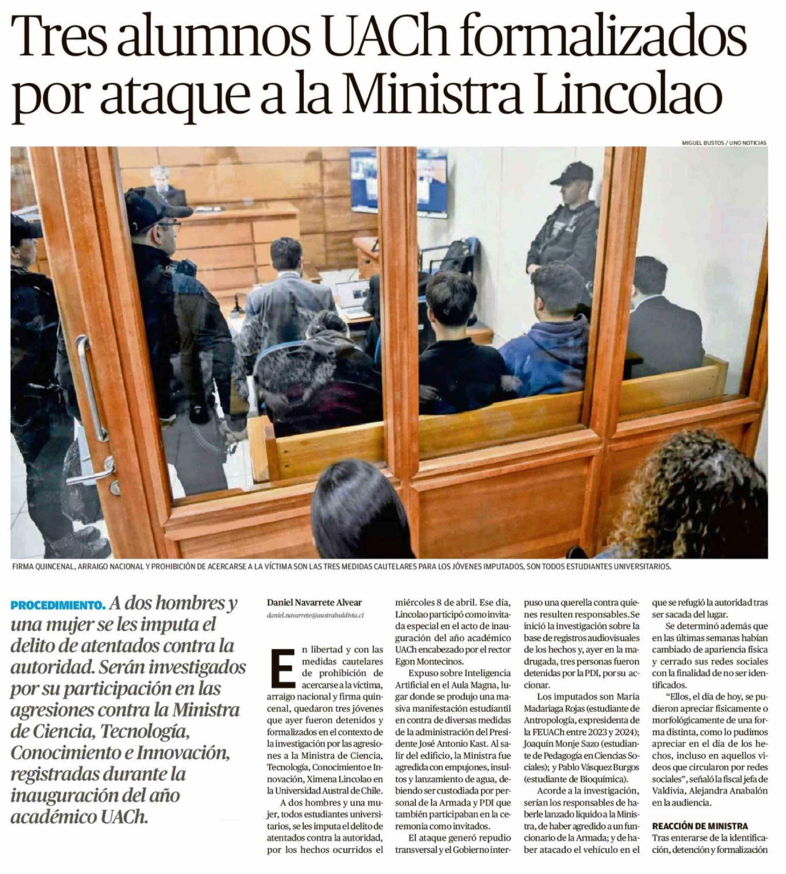 Título: Tres alumnos UACh formalizados por ataque a la Ministra Lincolao