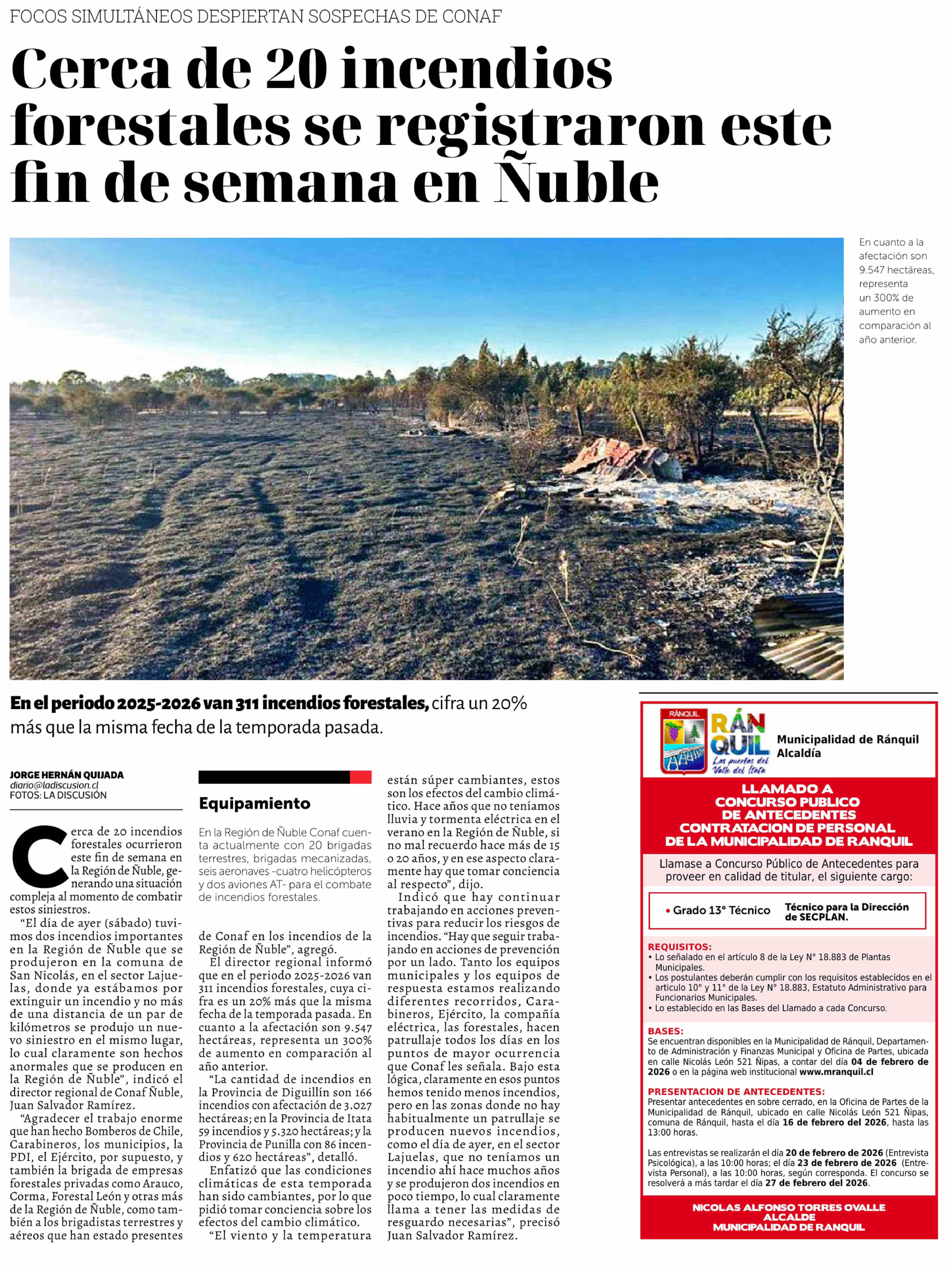 Cerca de 20 incendios forestales se registraron este fin de semana en Nuble 03-02-2026 La Discusión |