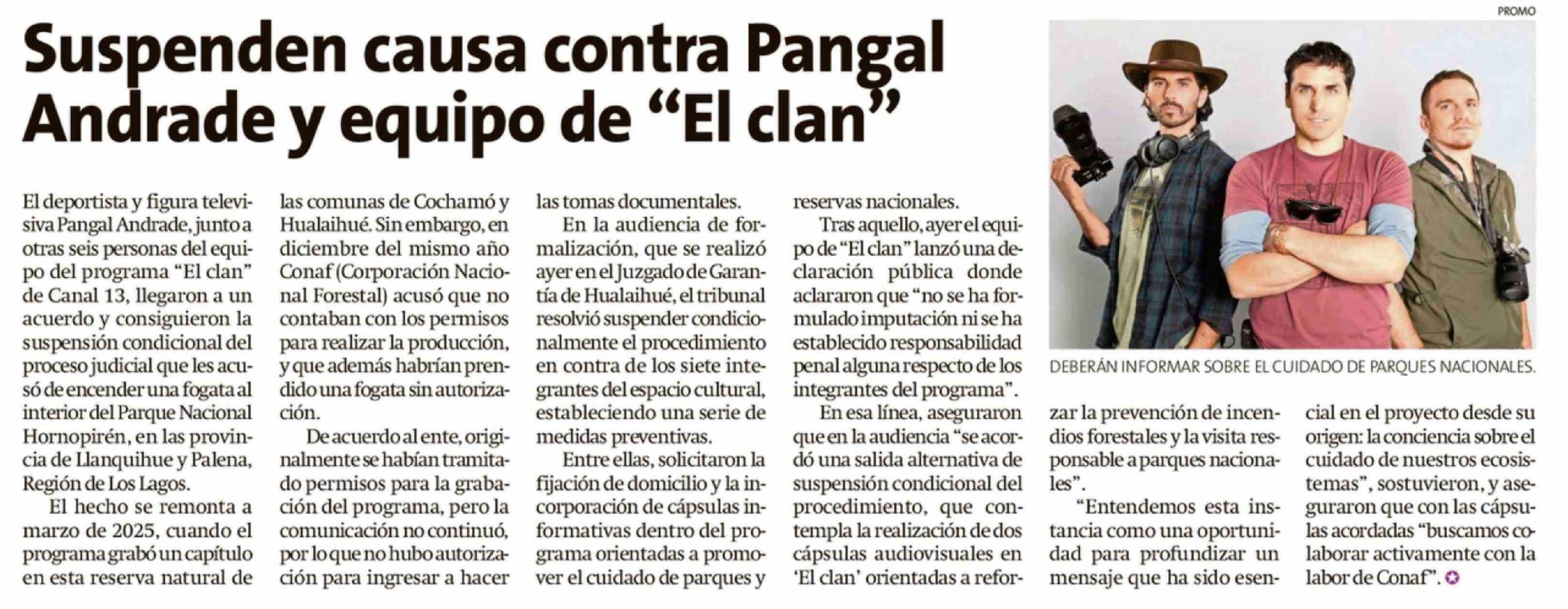 Suspenden causa contra Pangal Andrade y equipo de "El clan' 05-02-2026 La Estrella de Chiloé |