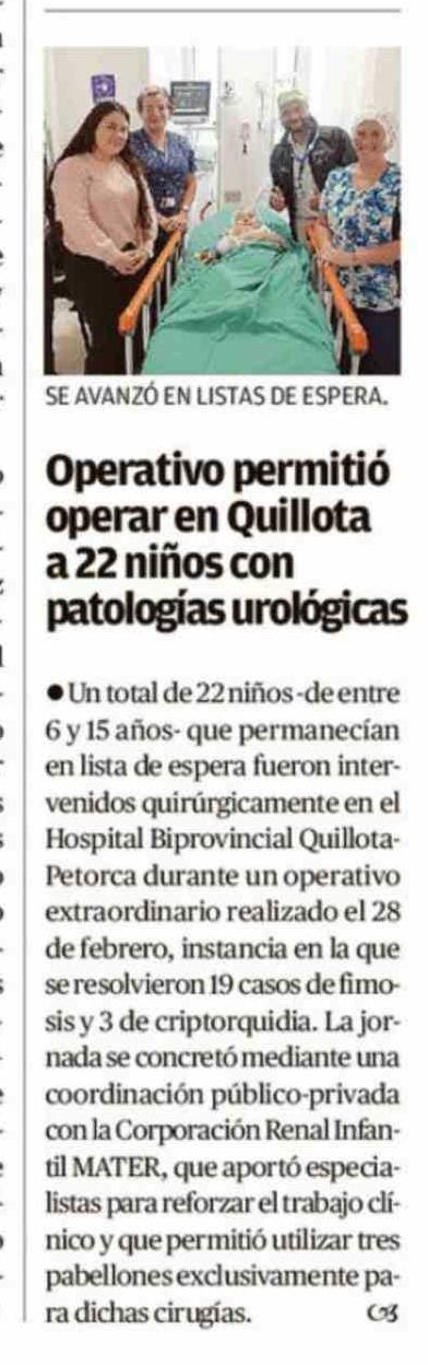 Título: Operativo permitió operar en Quillota a 22 niños con patologías urológicas