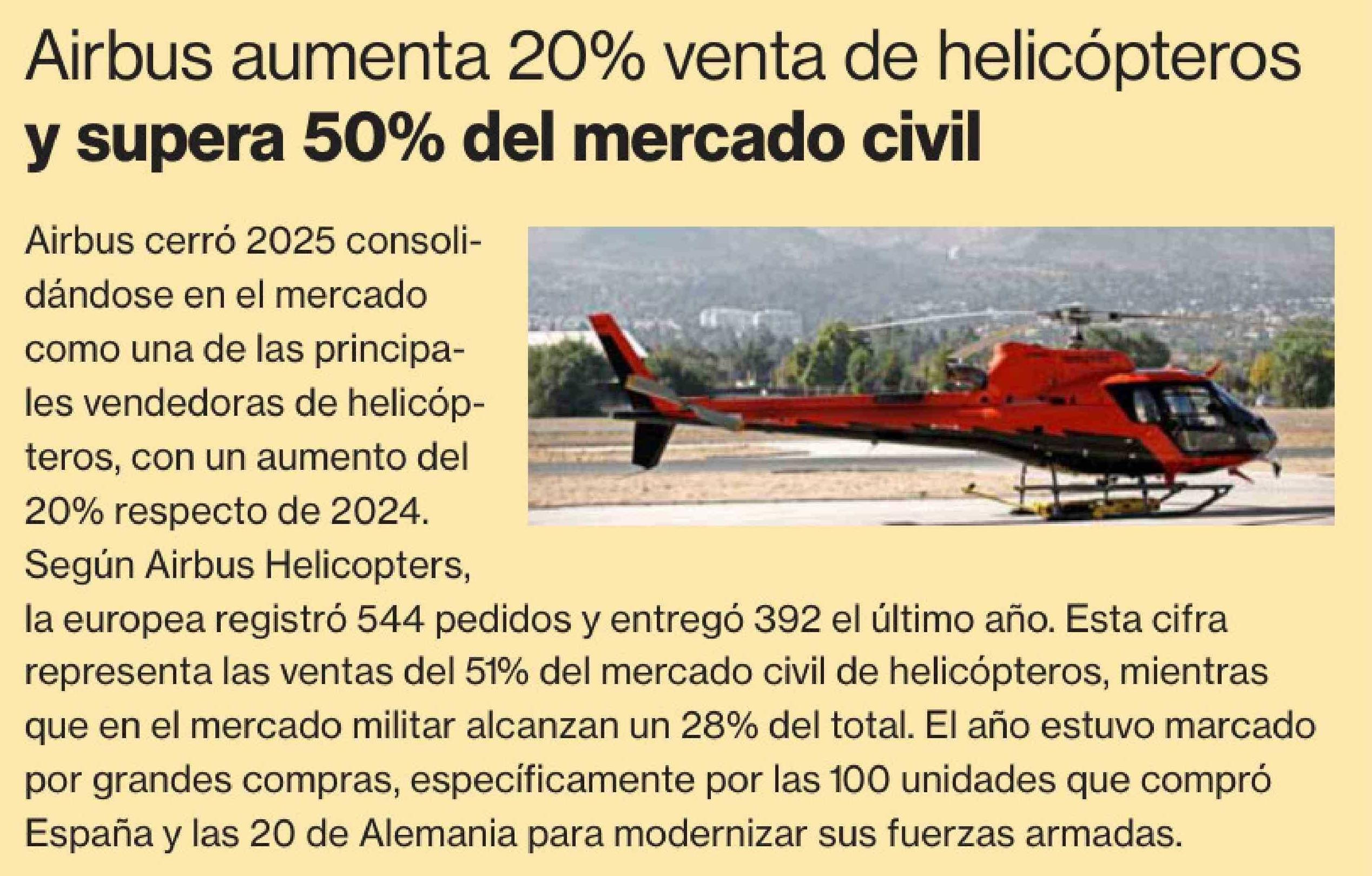 Título: Airbus aumenta 20% venta de helicópteros y supera 50% del mercado civil