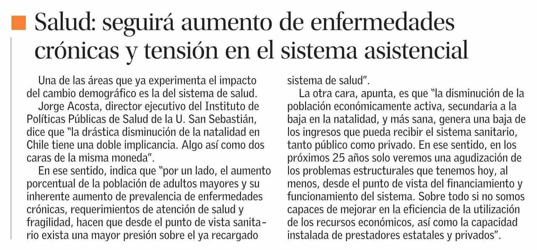N Salud: seguirá aumento de enfermedades crónicas y tensión en el sistema asistencial 23-03-2026 El Mercurio |