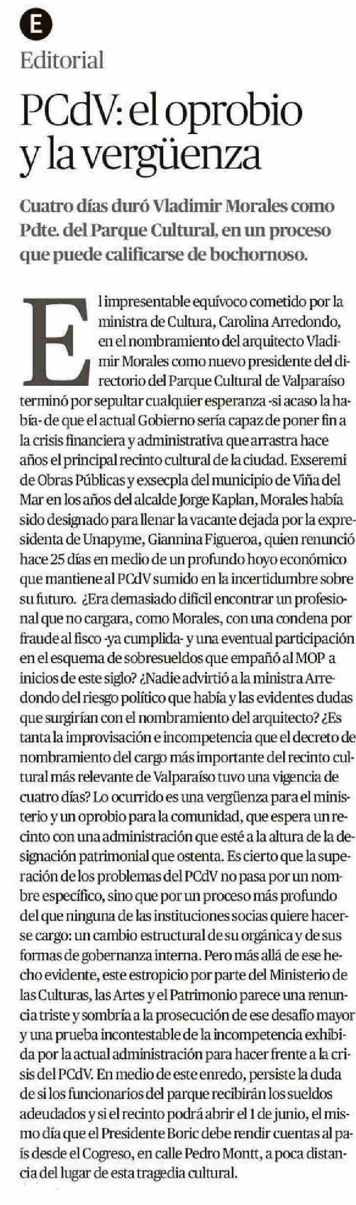 PCdV: el oprobio y la vergüenza 31-05-2025 El Mercurio de Valparaíso |