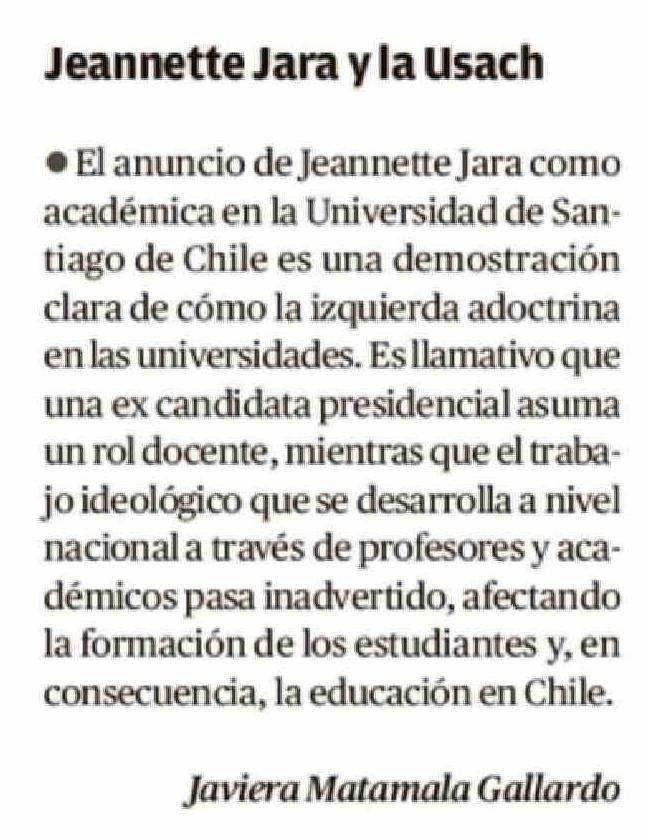 Cartas: Jeannette Jara y la Usach