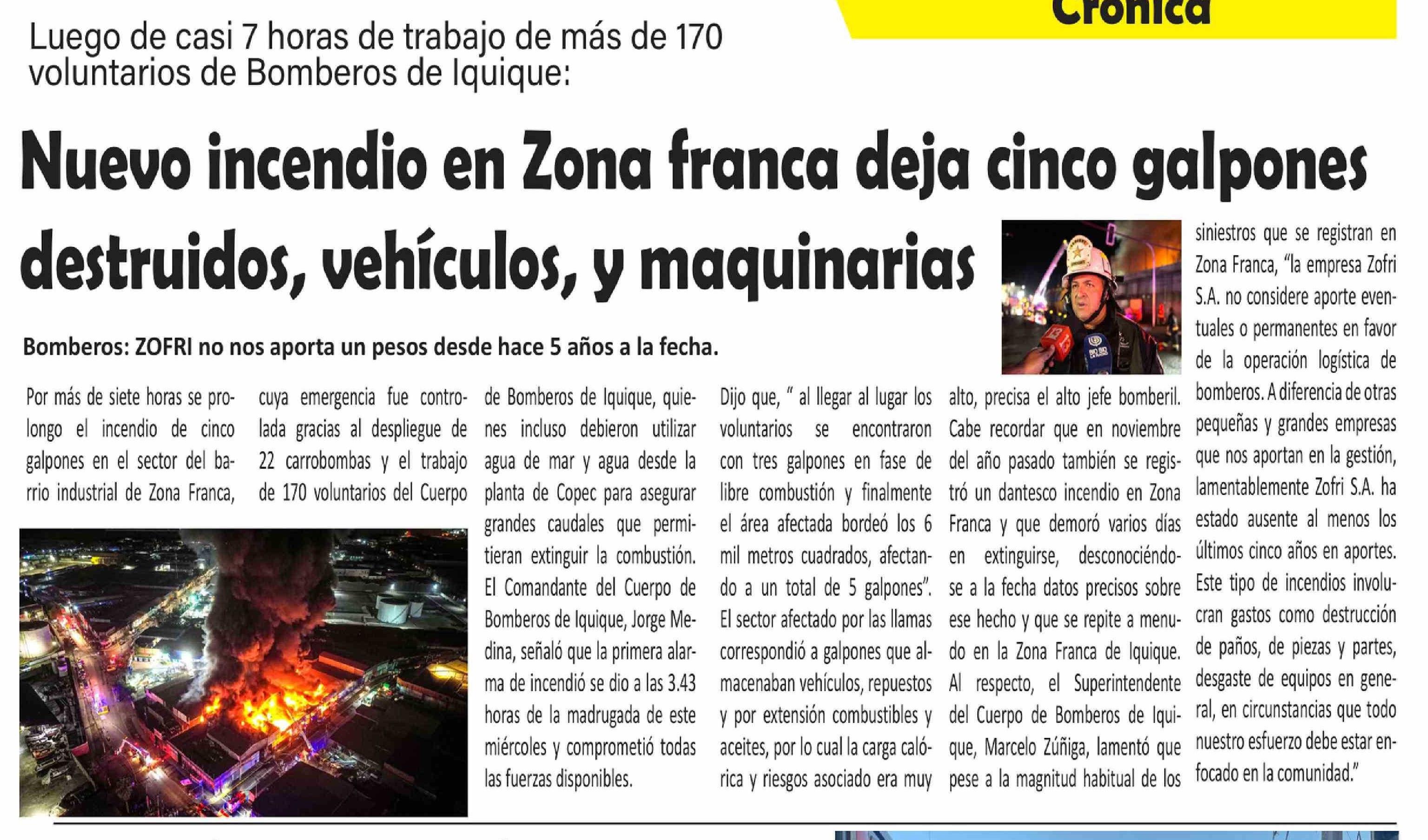 | Título: | Nuevo incendio en Zona franca deja cinco galpones destruidos, vehículos, y maquinarias |