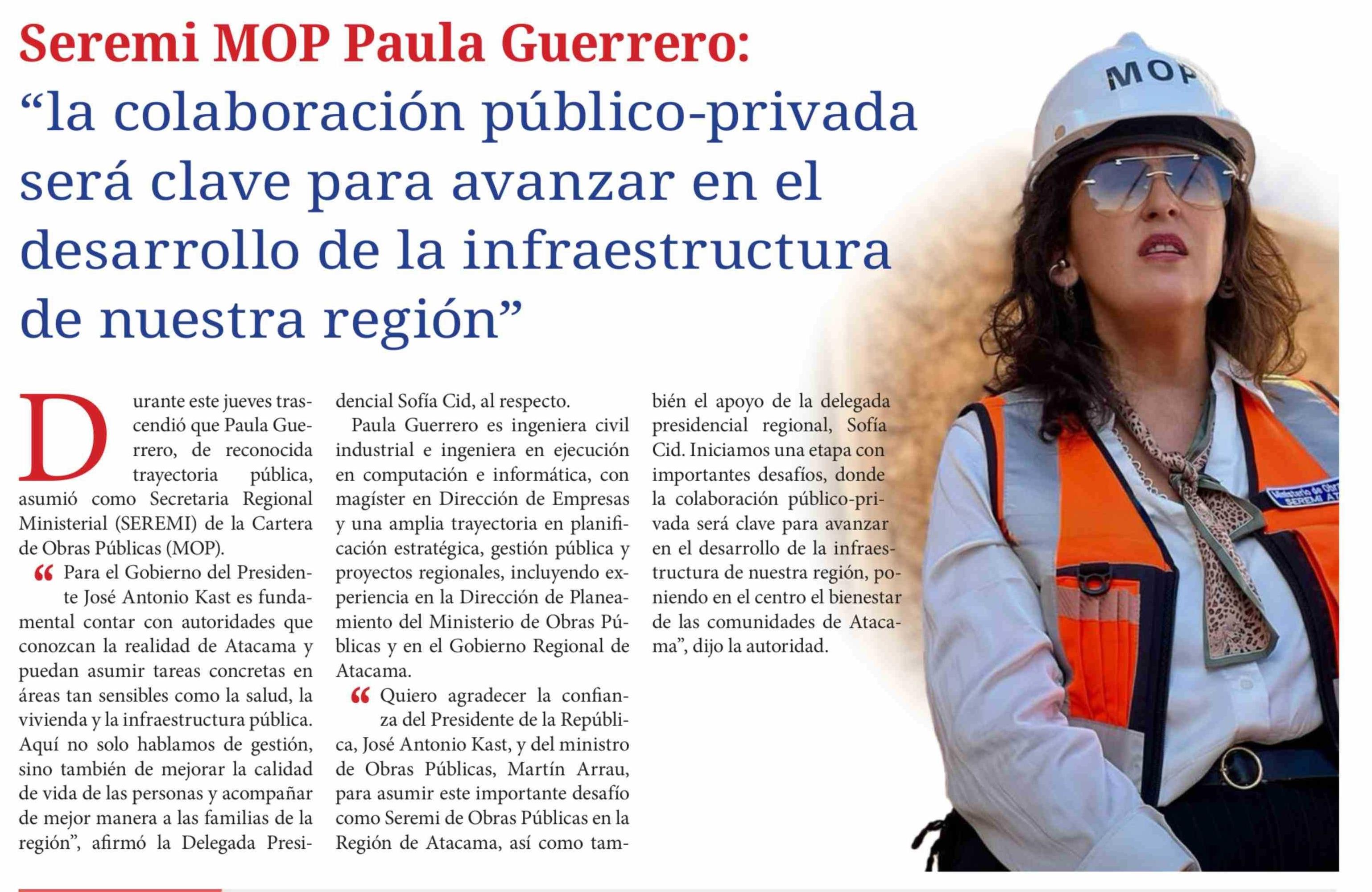 Seremi MOP Paula Guerrero: "la colaboración público-privada será clave para avanzar en el desarrollo de la infraestructura de nuestra región" 28-03-2026 Diario Chañarcillo |