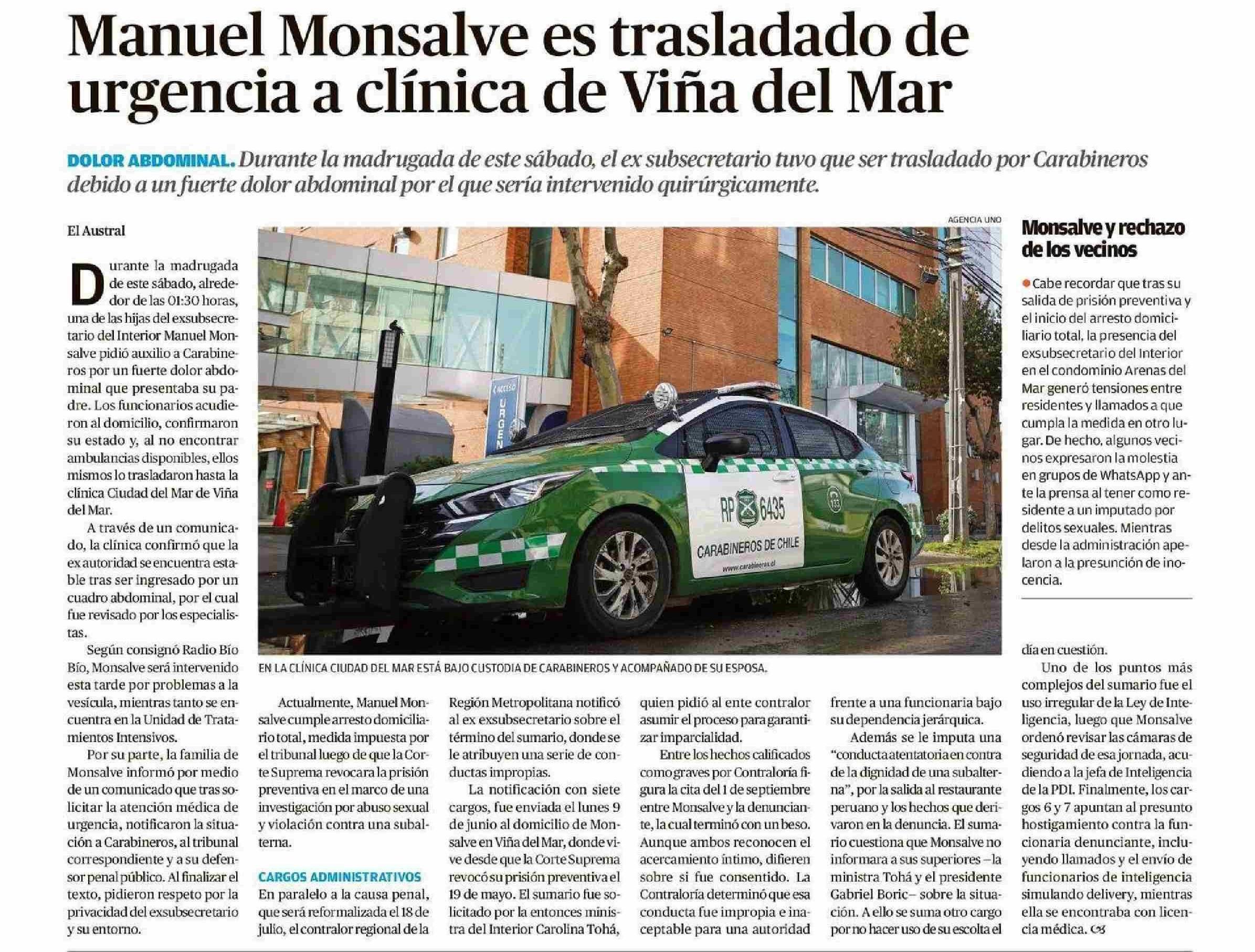 Manuel Monsalve es trasladado de urgencia a clínica de Viña del Mar 15-06-2025 El Austral de la Araucanía |