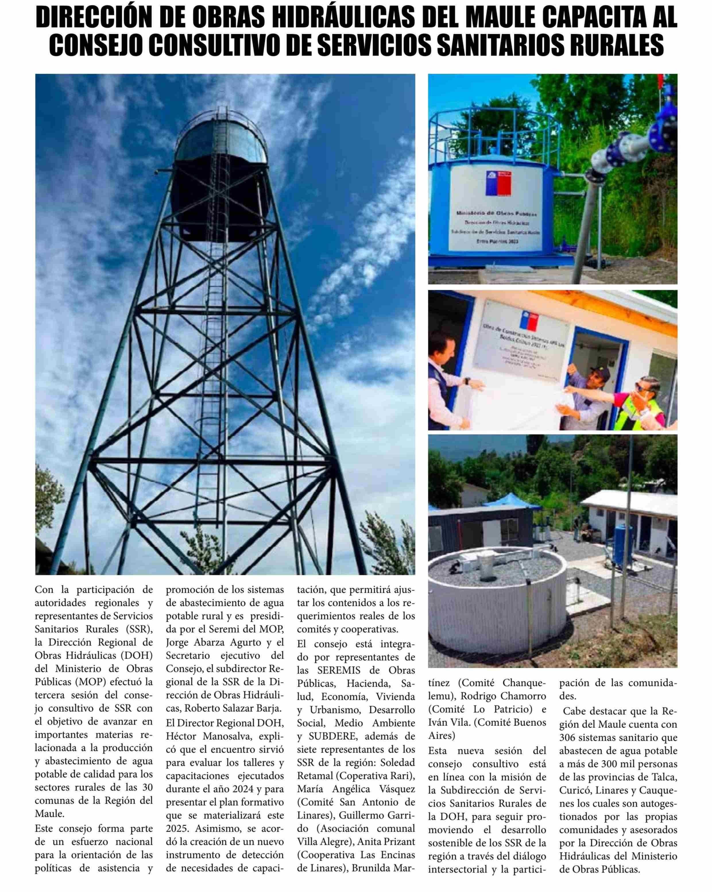 DINECLIUN DE UBRAS RIDRAUVLICAS DEL MAULE LAPALITA AL CONSEJO CONSULTIVO DE SERVICIOS SANITARIOS RURALES 12-06-2025 El Lector |