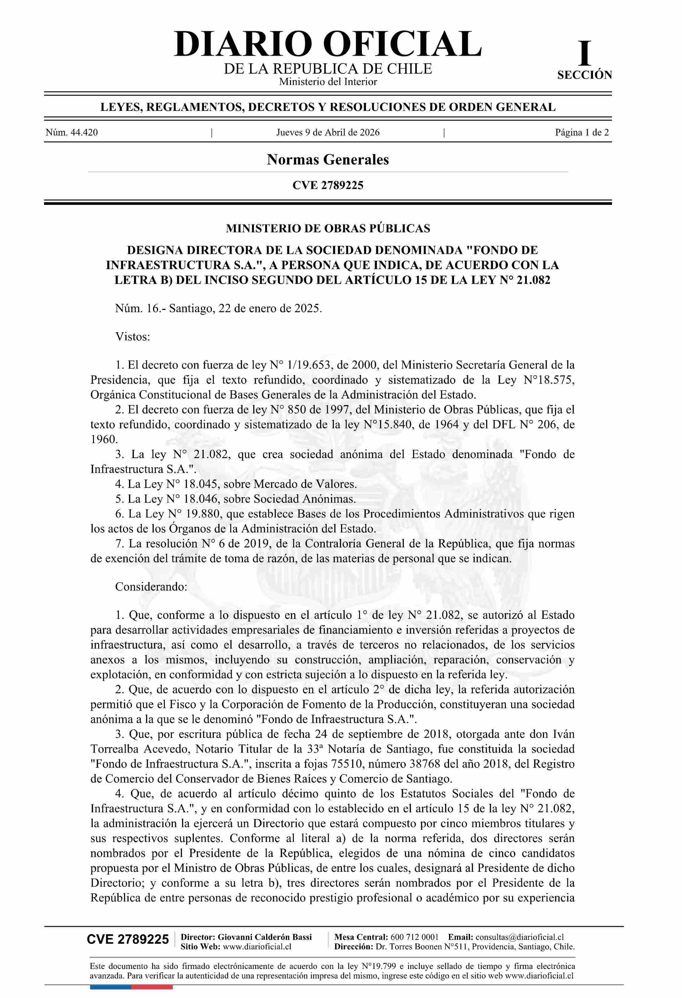 MINISTERIO DE OBRAS PÚBLICAS 09-04-2026 Diario Oficial Edición Electrónica |