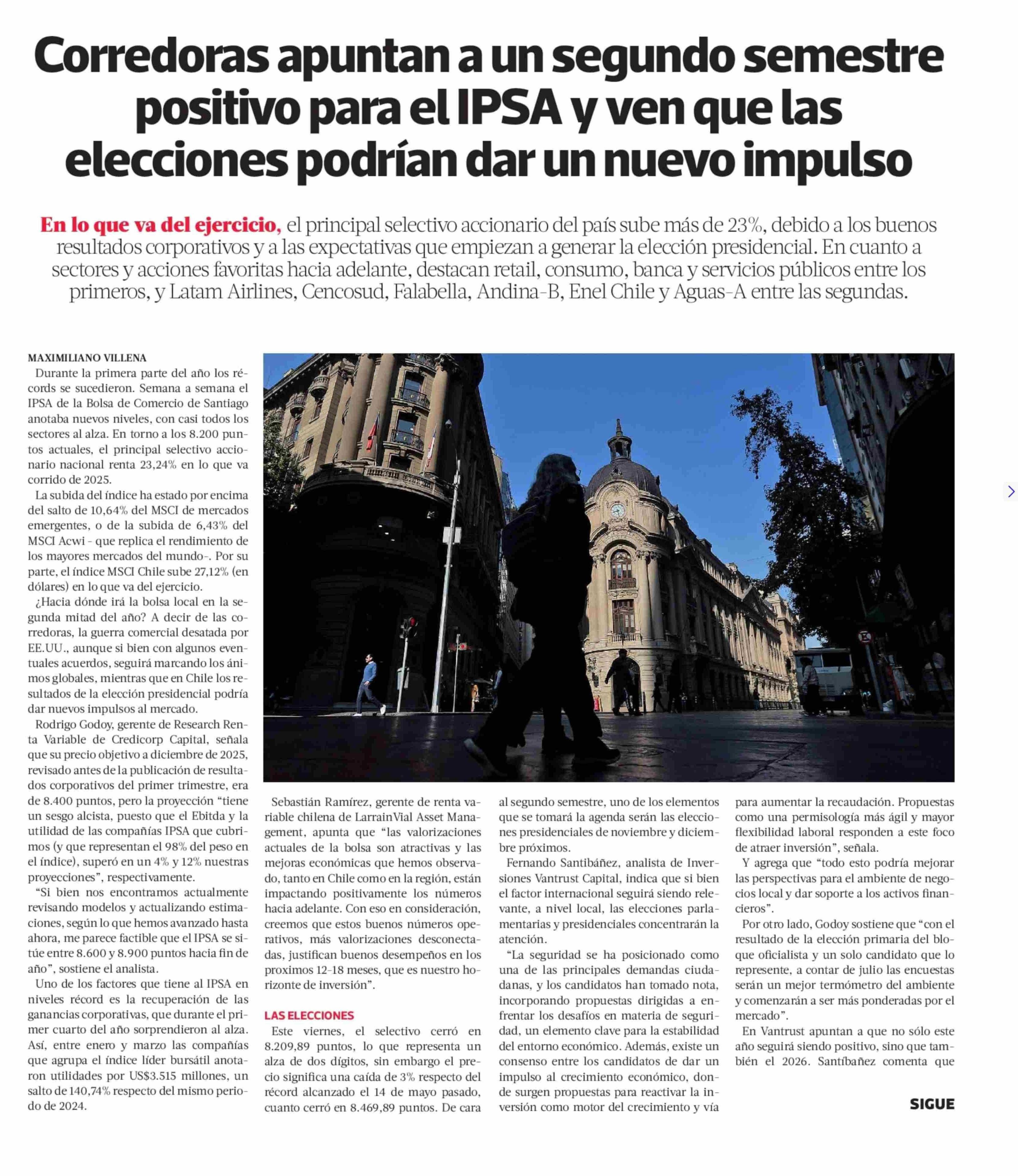 Título: Corredoras apuntan a un segundo semestre positivo para el IPSA y ven que las elecciones podrían dar un nuevo impulso
