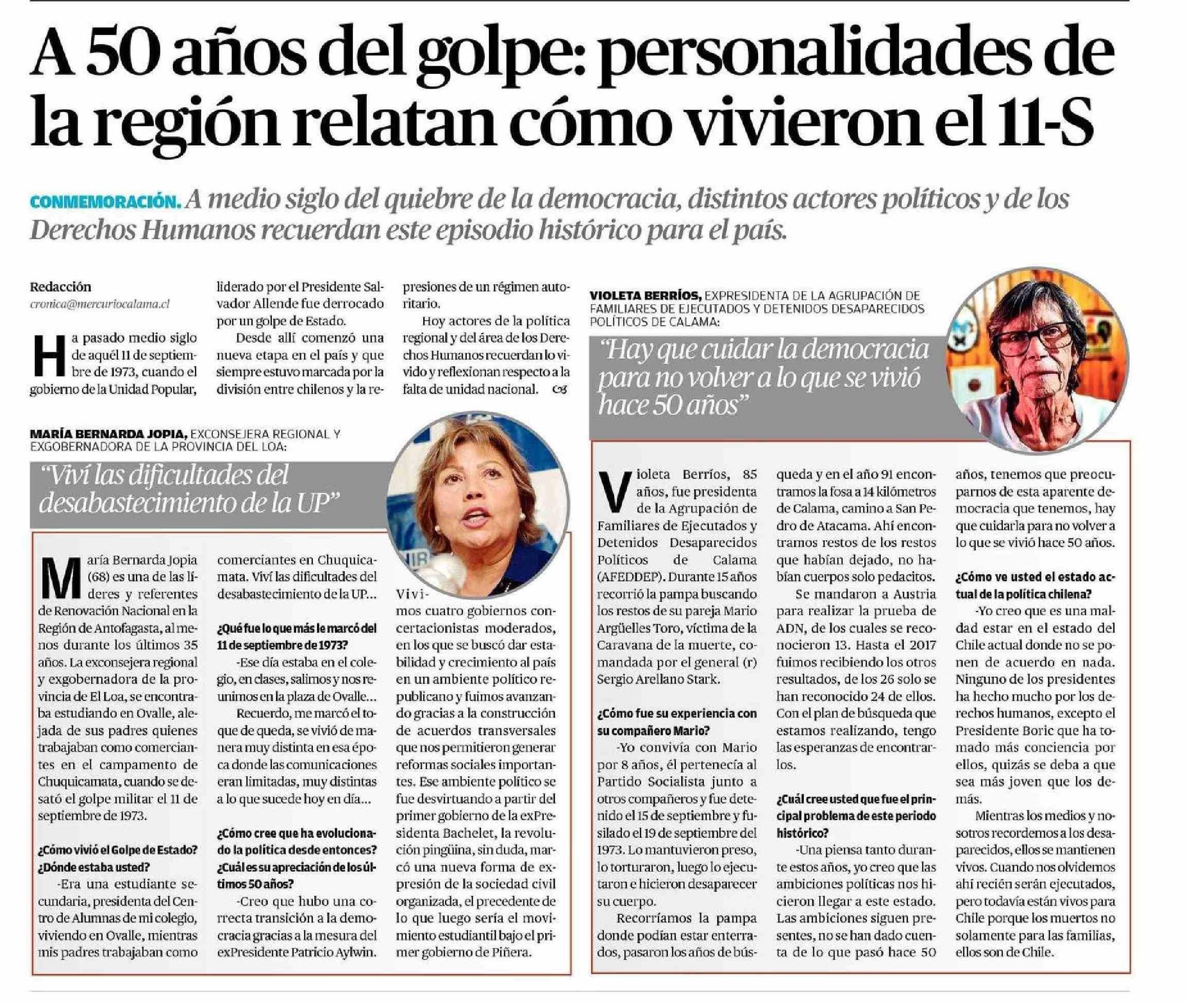 A 50 años del golpe: personalidades de la región relatan cómo vivieron el 11-S 11-09-2023 El Mercurio de Antofagasta |