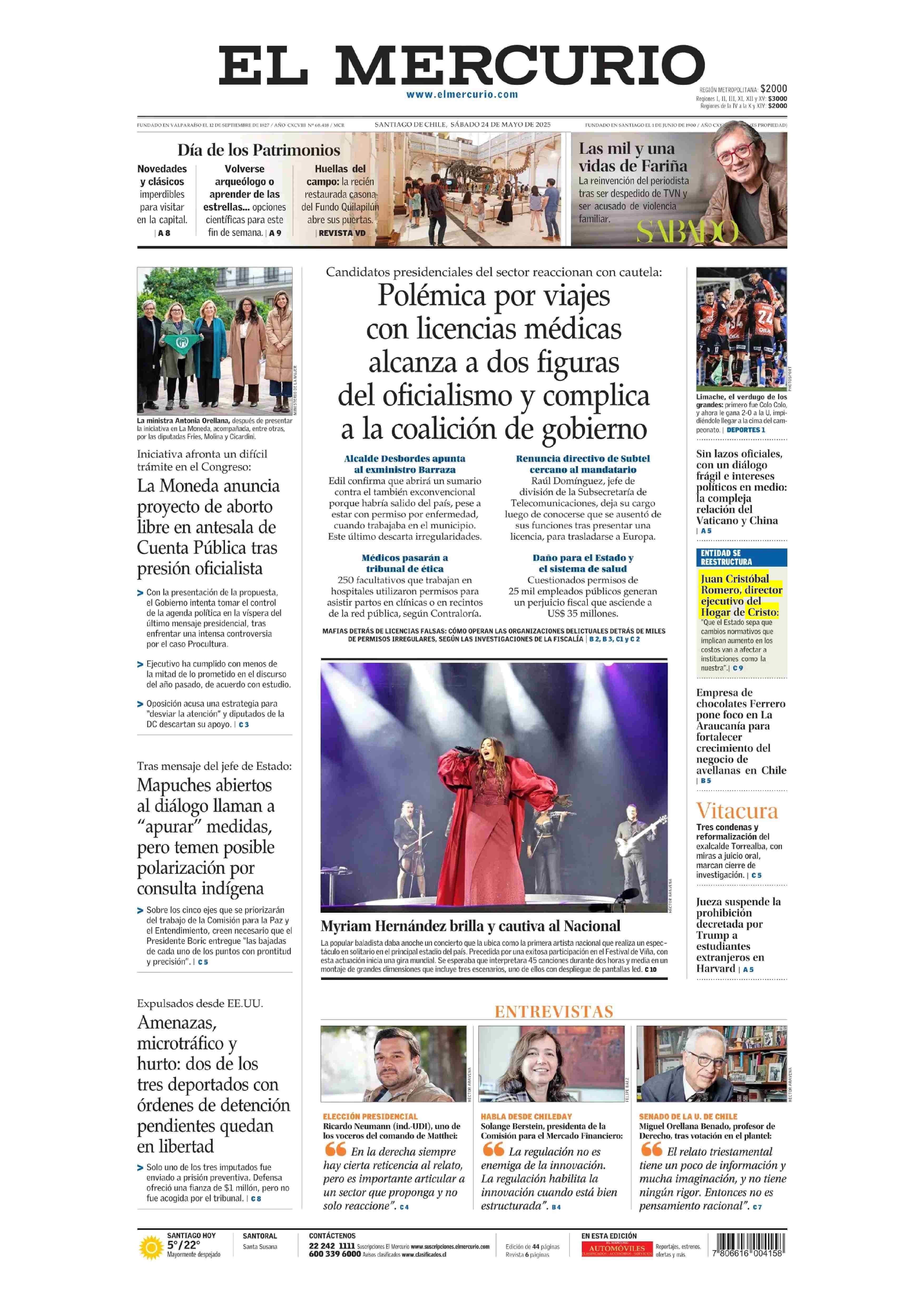 PORTADA EL MERCURIO (A) CHILE 24-05-2025 El Mercurio |