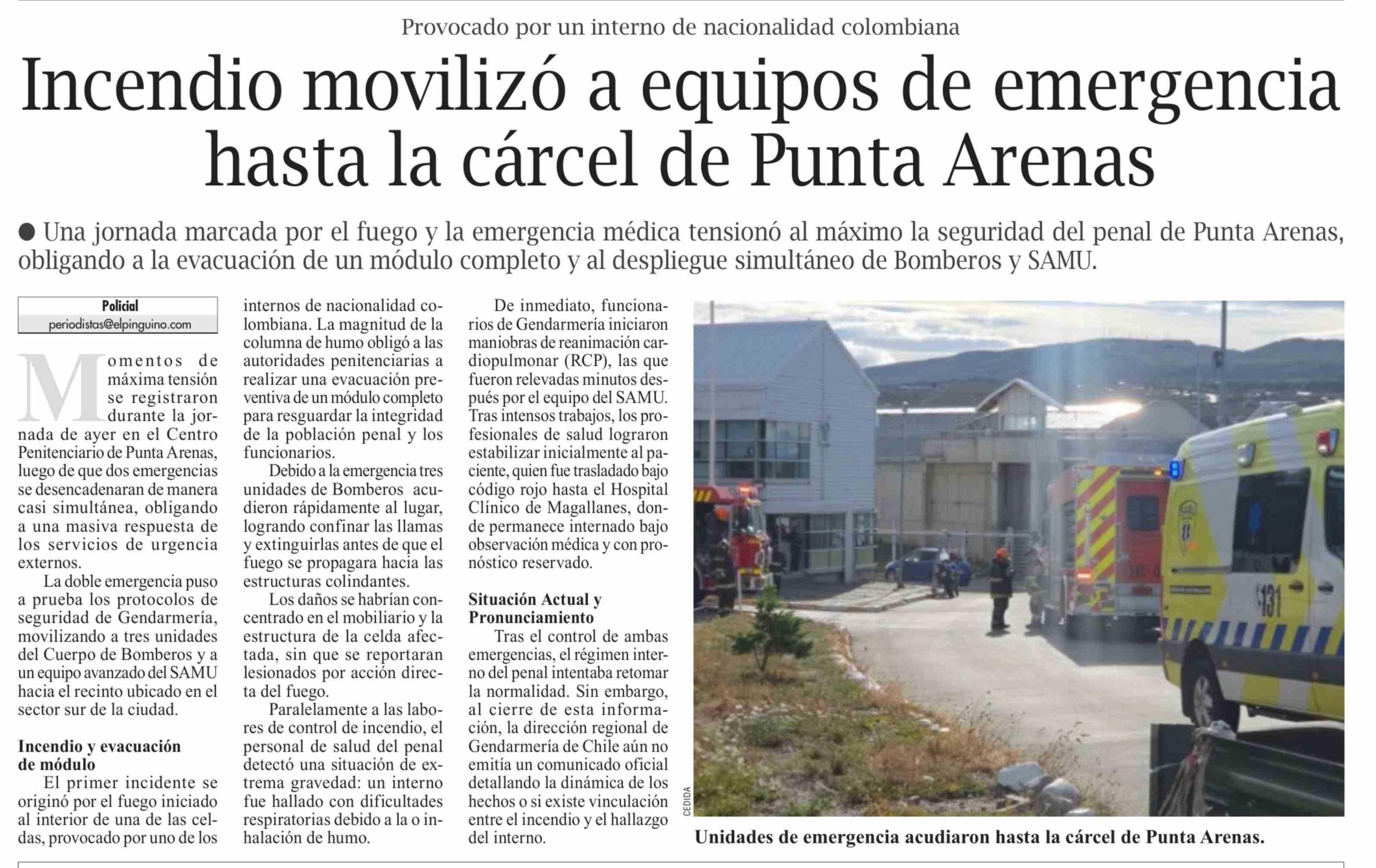 Incendio movilizó a equipos de emergencia hasta la cárcel de Punta Arenas 05-02-2026 El Pingüino |