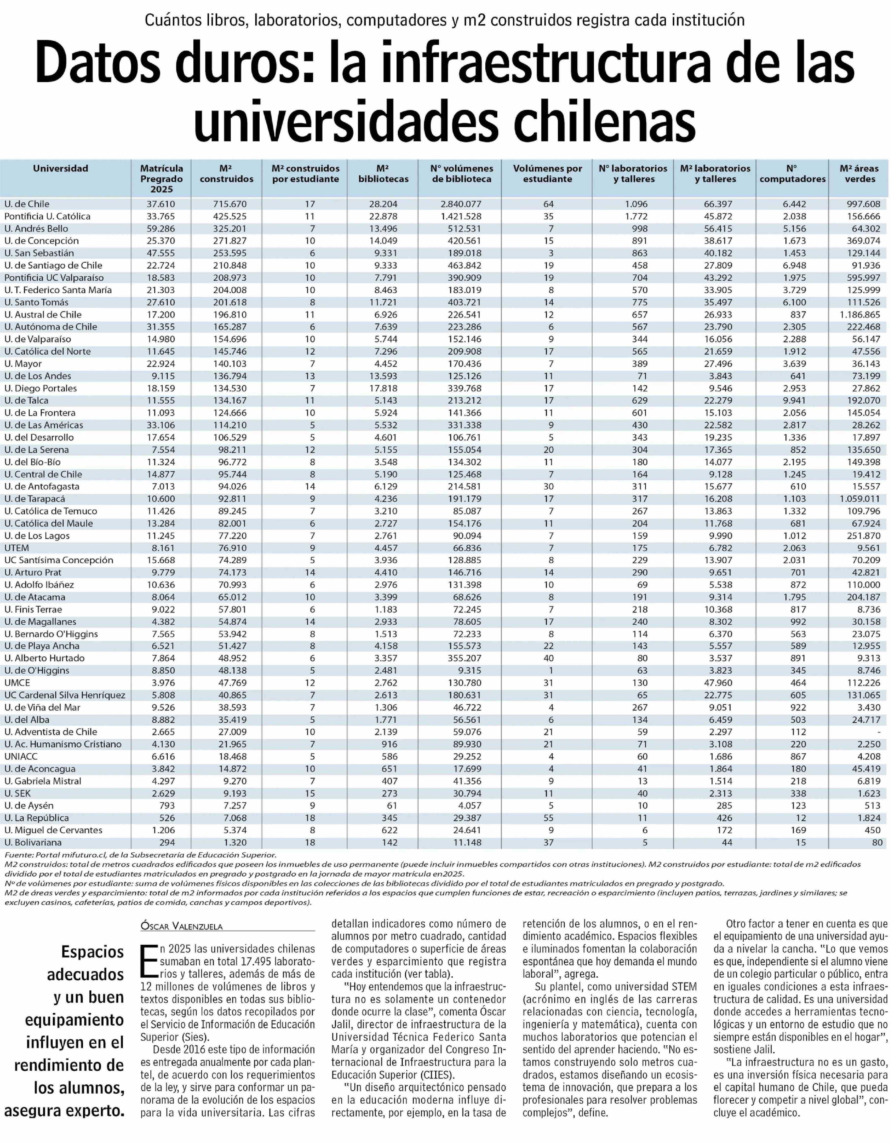 Título: Datos duros: la infraestructura de las universidades chilenas