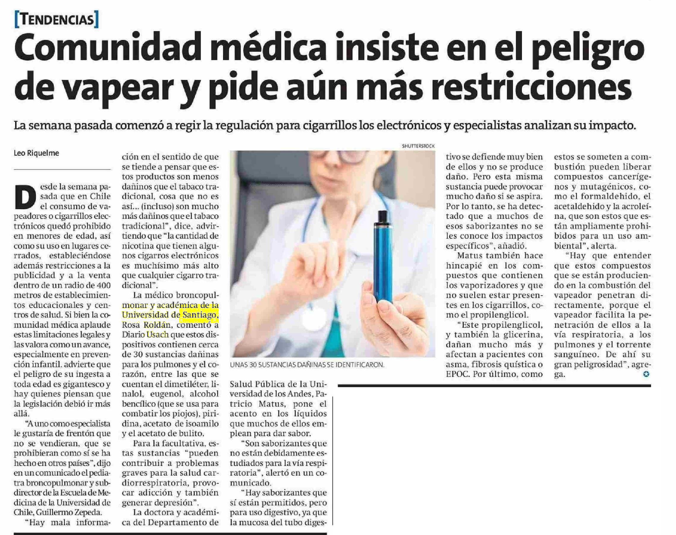 Título: Comunidad médica insiste en el peligro de vapear y pide aún más restricciones