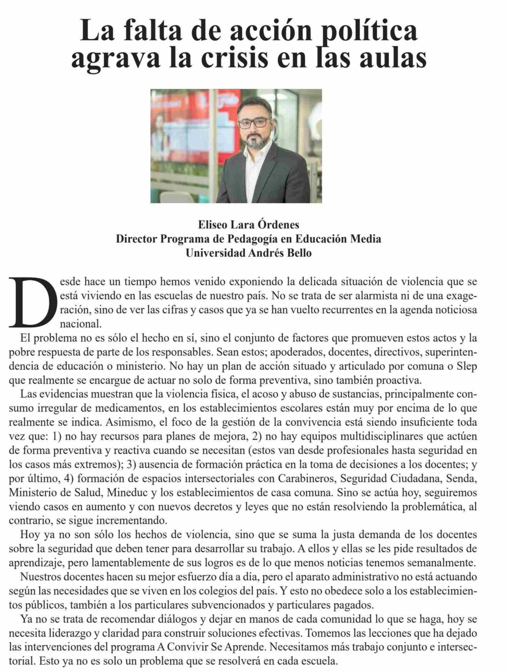 | Título: | COLUMNAS DE OPINIÓN: La falta de acción política agrava la crisis en las aulas |