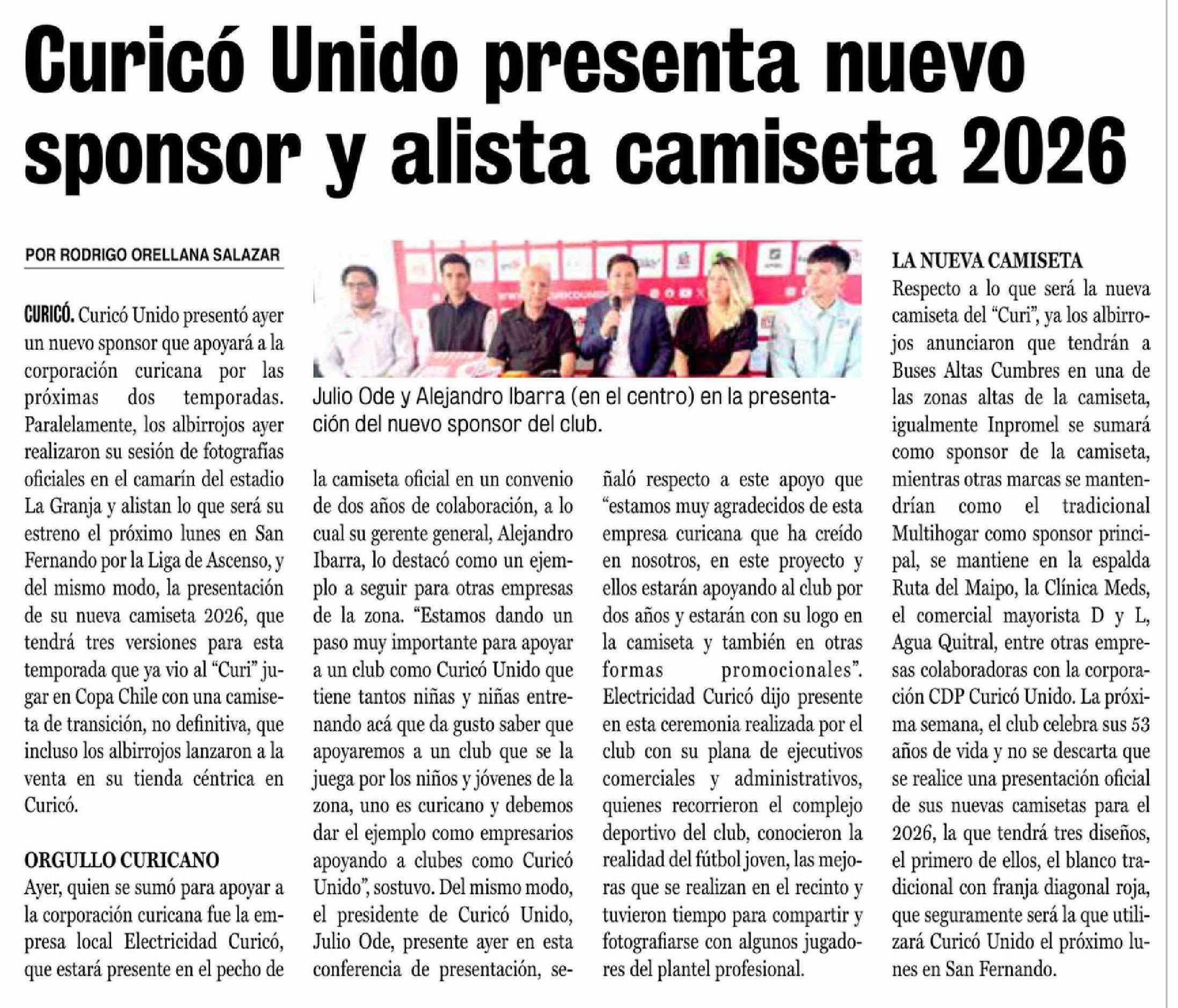 | Título: | Curicó Unido presenta nuevo sponsor y alista camiseta 2026 |
