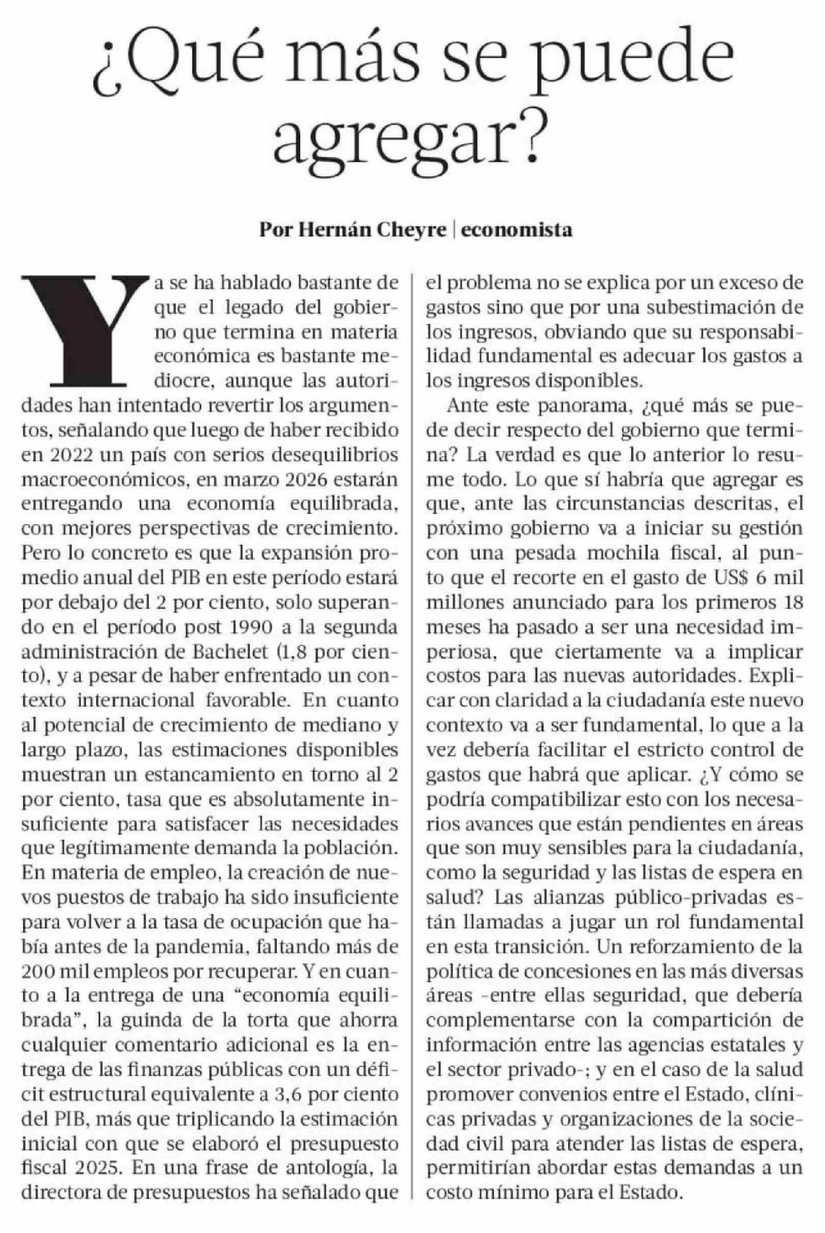 Columnas de Opinión: ¿Qué más se puede agregar? 22-02-2026 La Tercera |